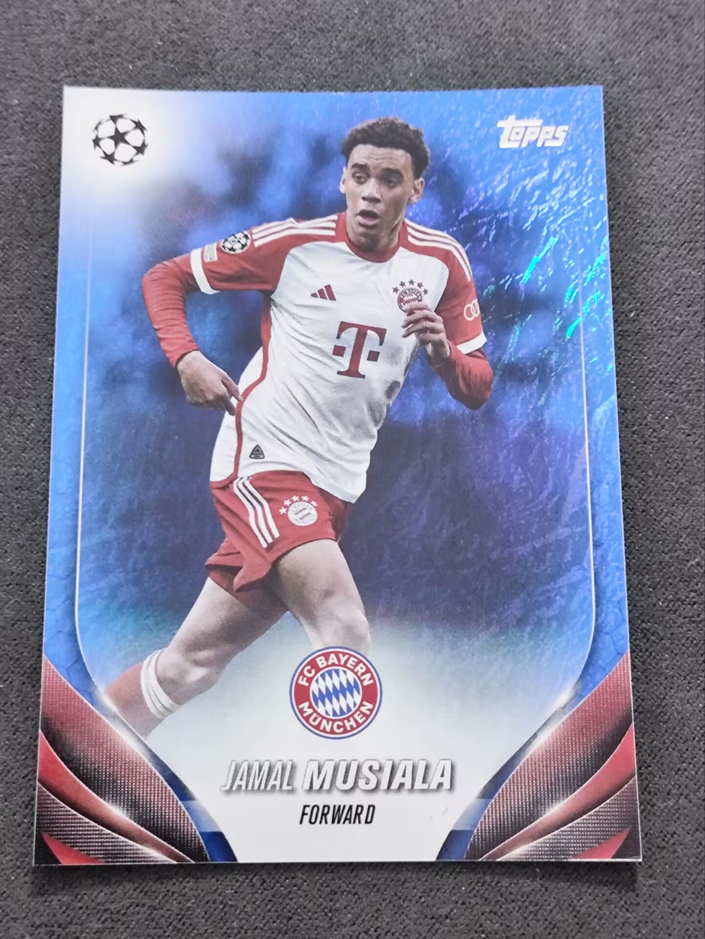 2024 Topps Chrome Jamal Musiala 【紫之上代拍】欧冠 碧玉 拜仁慕尼黑 穆夏拉 54/175编 蓝玉折 卡品如图 收藏必备(型)