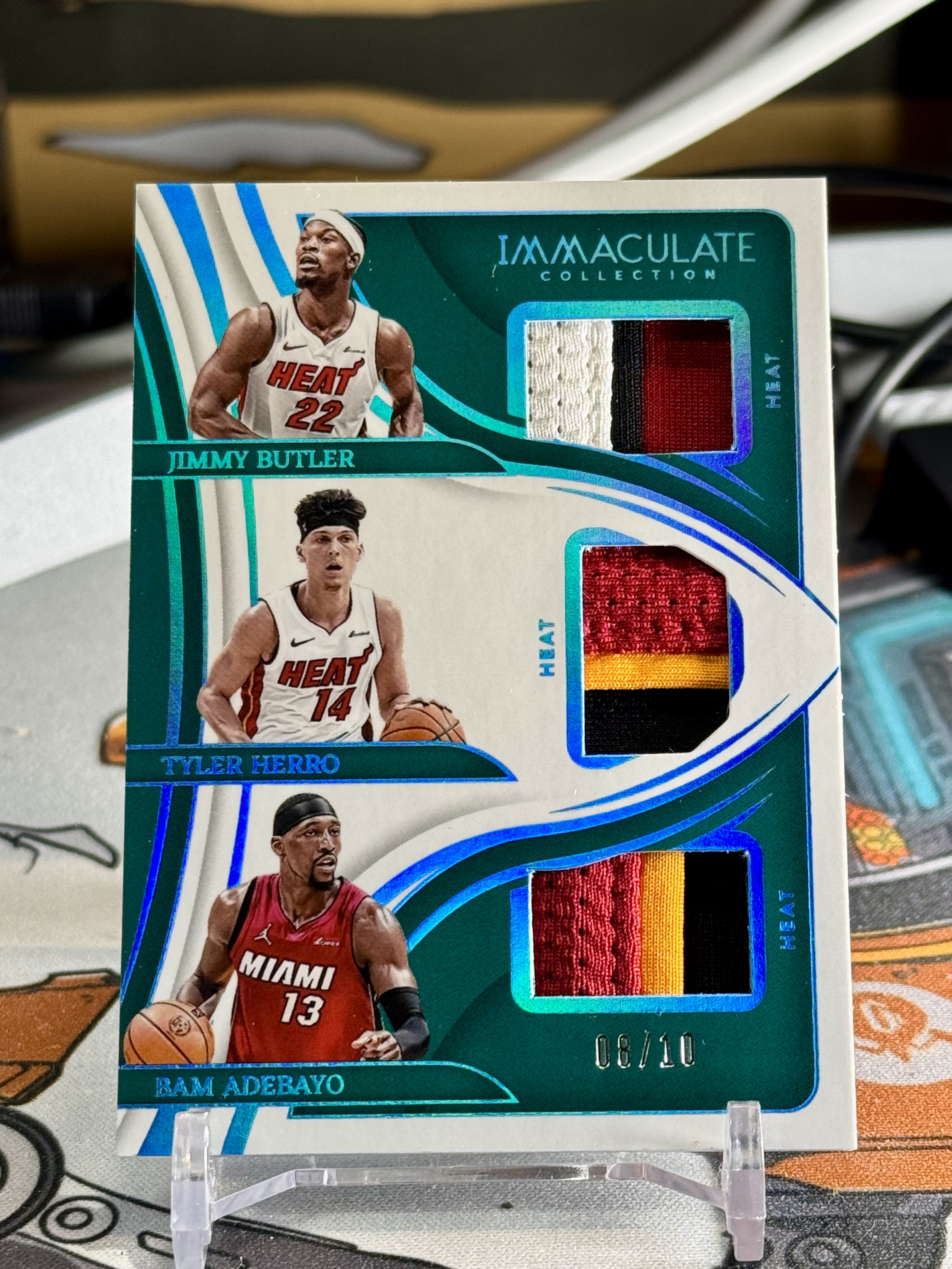 (黑猫代卖)2023-24 Panini imm系列 热火 三巨头 08/10 超低编 GU 落场球衣 吉米巴特勒 泰勒希罗 阿德巴约 暴力切割 三色球衣 专收必备 背面轻微印痕介意勿拍(杨)