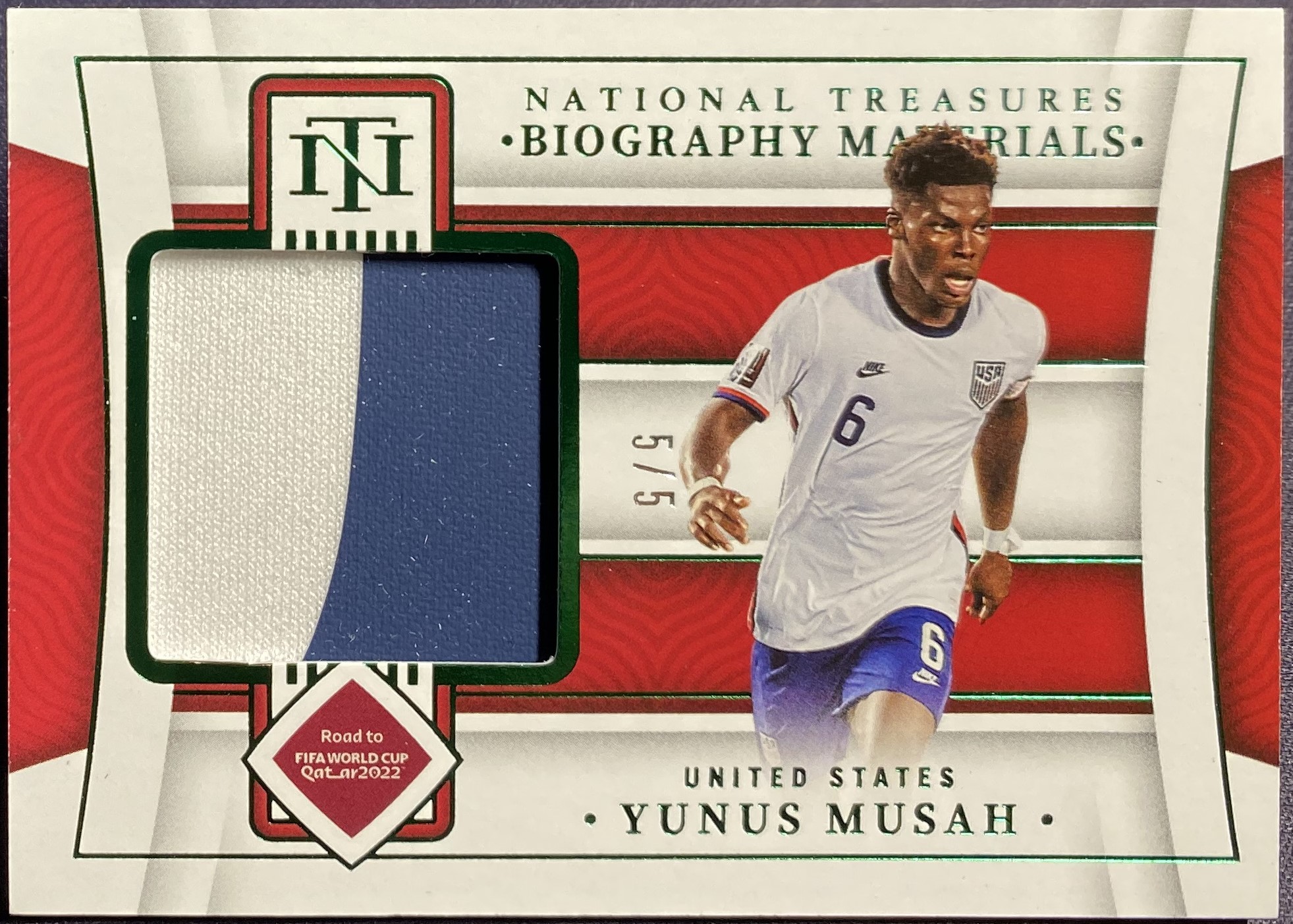 2022 Panini National Treasures Yunus Musah 尤纳斯 穆萨 AC米兰 美国 国宝 5/5编 尾编 超低编绿折 传记物料 Patch 瓦伦西亚 卡品如图 HT