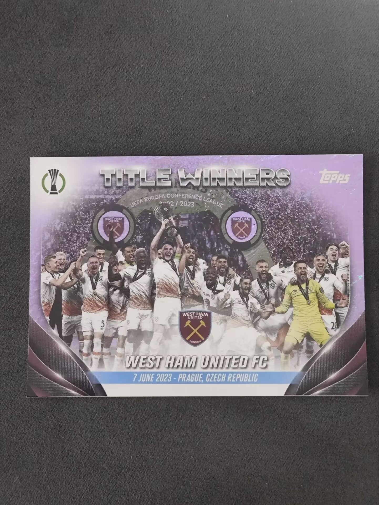 2024 Topps Chrome West Ham United FC 【紫之上代拍】欧冠 碧玉 西汉姆联 捧杯庆祝 Title Winners 特卡 5/15编 紫玉折 卡品如图 收藏必备(至)