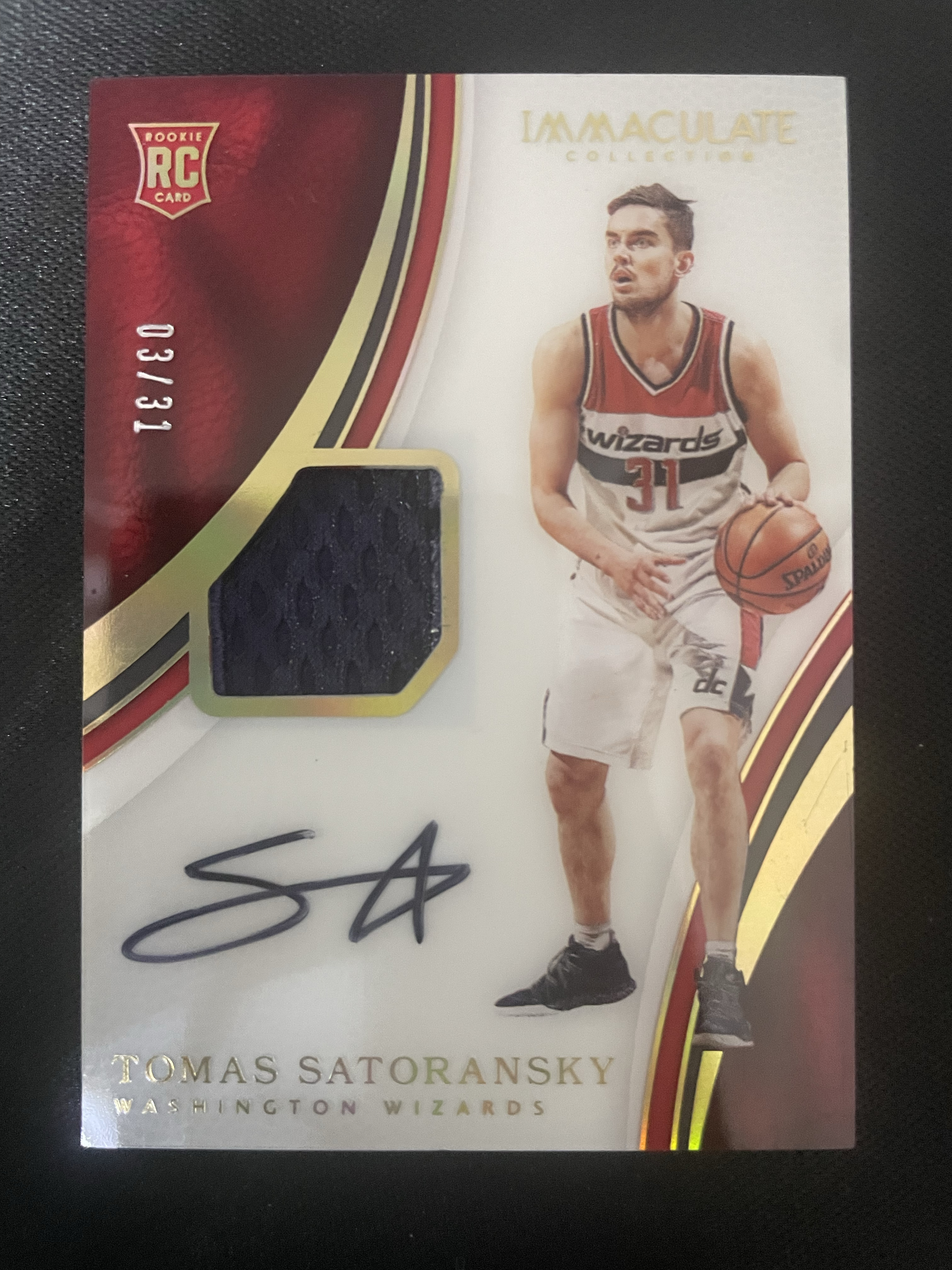 2016-17 Panini Immaculate Tomas Satoransky RC 爱咪咪 imm 奇才 新秀 托马什 萨托兰斯基 03/31编 签字 单窗球衣卡 物料 RJA 卡品如图