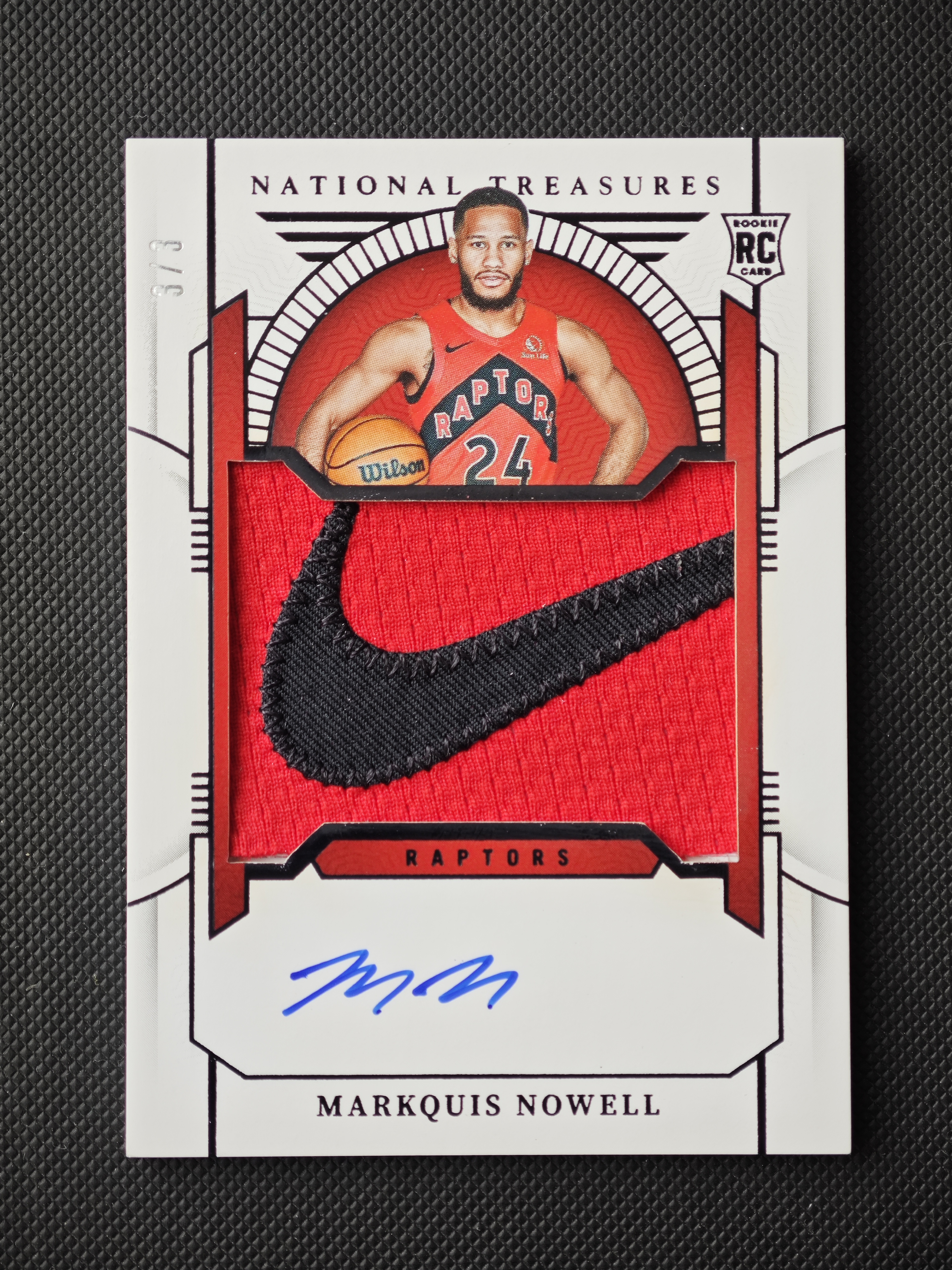 2023-24 Panini National Treasures Scottie Barnes RC 猛龙新秀 马奎斯 诺威尔 诺埃尔 3编国宝正RPA 黑折卡签 耐克标切割 巴雷特迪克队友 细节如图