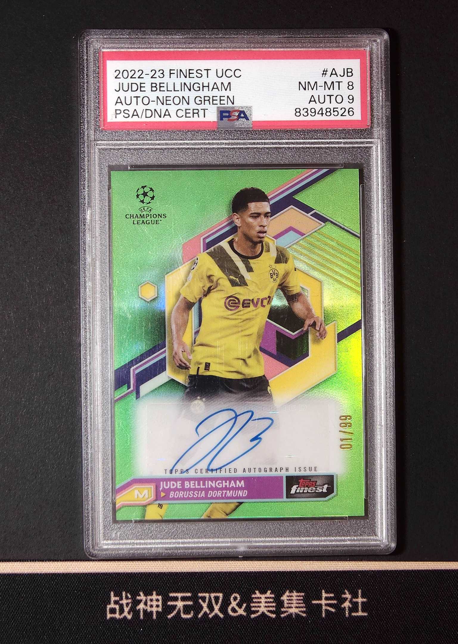 2022-23 TOPPS finest Jude Bellingham 祖德 贝林厄姆 签字 贴签 绿折 欧冠 1/99编 首编 多特蒙德 PSA评级卡9分 战神无双拍卡 (#5.8时倾)