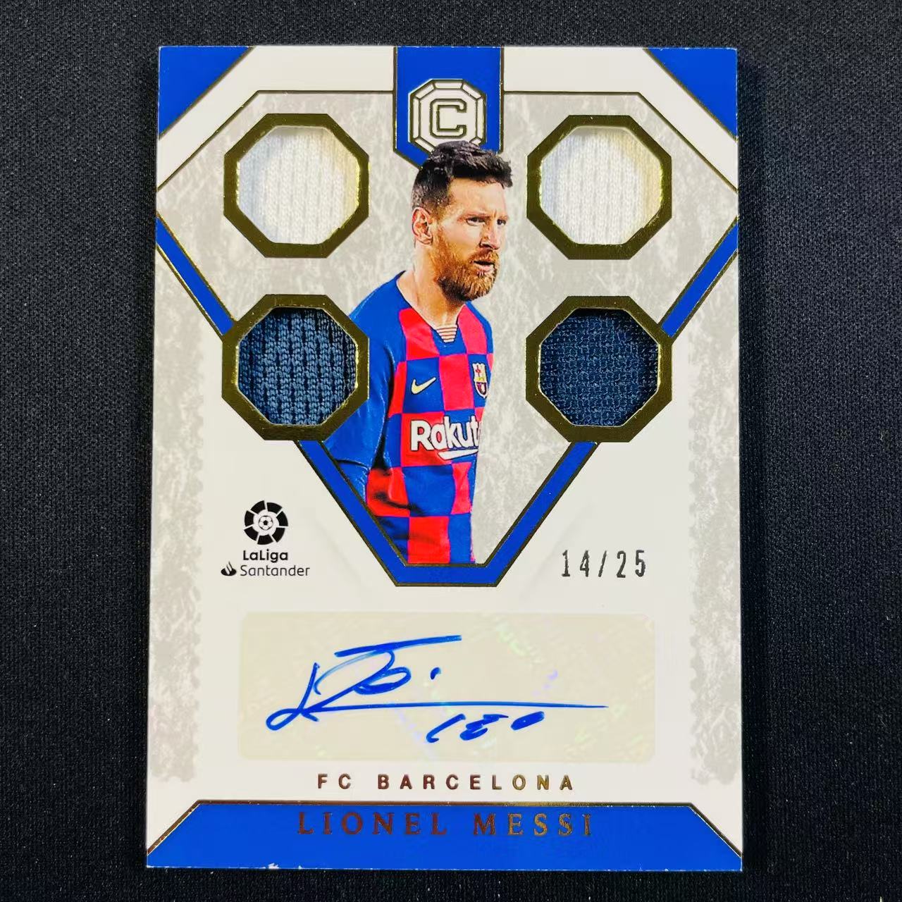 2019-20 Panini Chronicles 编年史 元年 巴萨 球王梅西 14/25编 金折 大理石 四窗球衣 完美签字 阿根廷 单核巅峰带队年 大满贯 白边 洛北拍卖 MKI3210三三