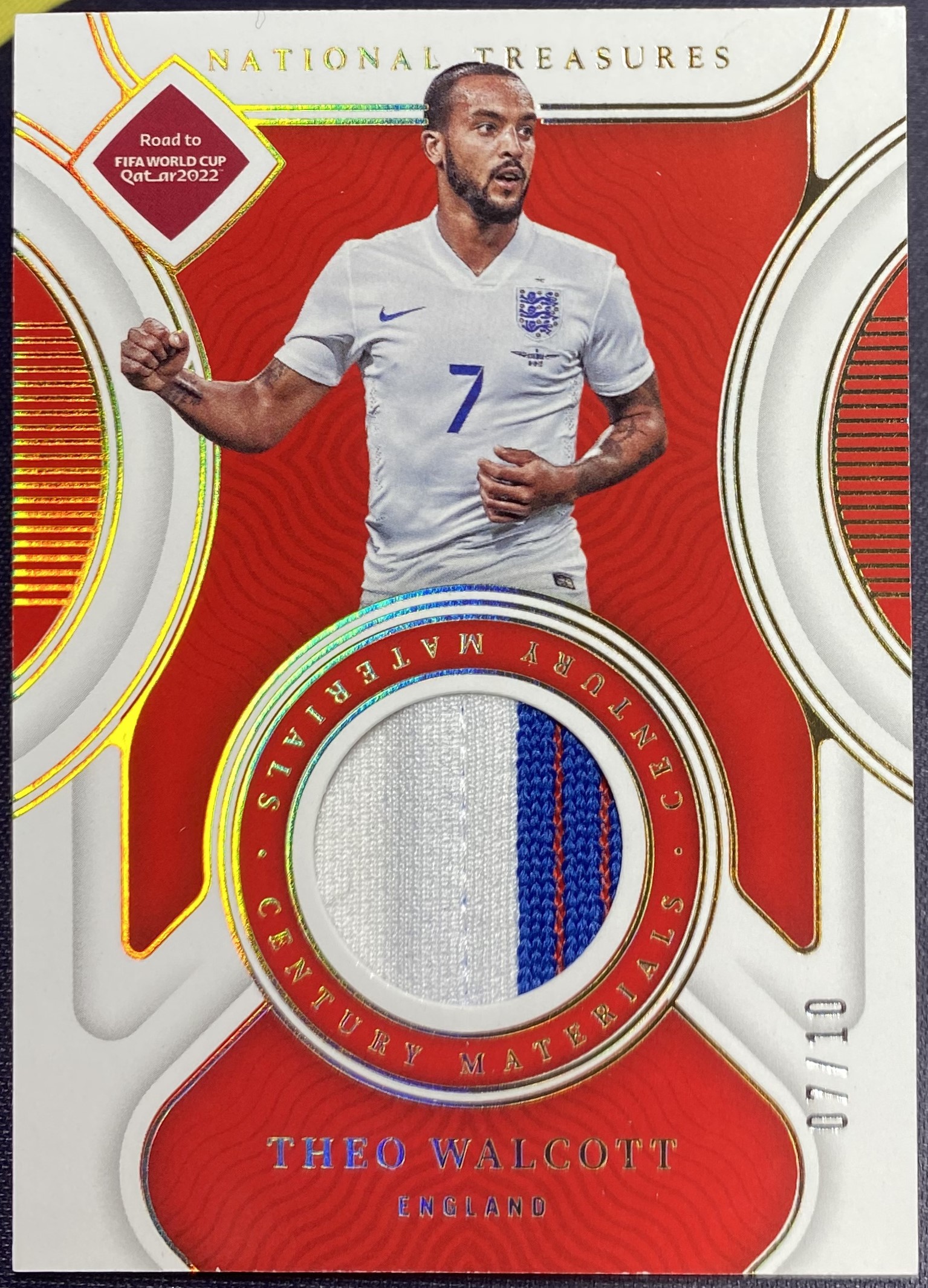 2022 Panini National Treasures Theo Walcott 沃尔科特 阿森纳 英格兰 国宝 07/10编 同背 低编金版物料 球员亲穿 Patch 卡品如图 专收必备HT