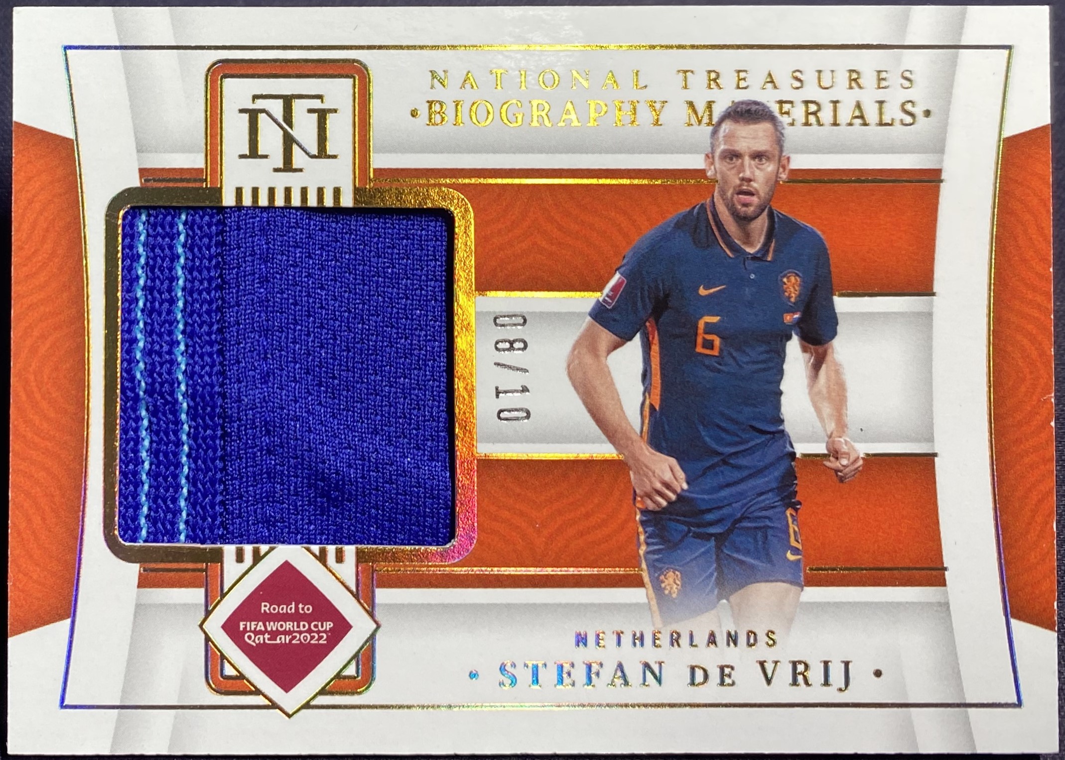 2022 Panini National Treasures Stefan De Vrij 德弗赖 国际米兰 荷兰 国宝 08/10编 低编金版物料 球员亲穿 Patch 拉齐奥 卡品如图 HT