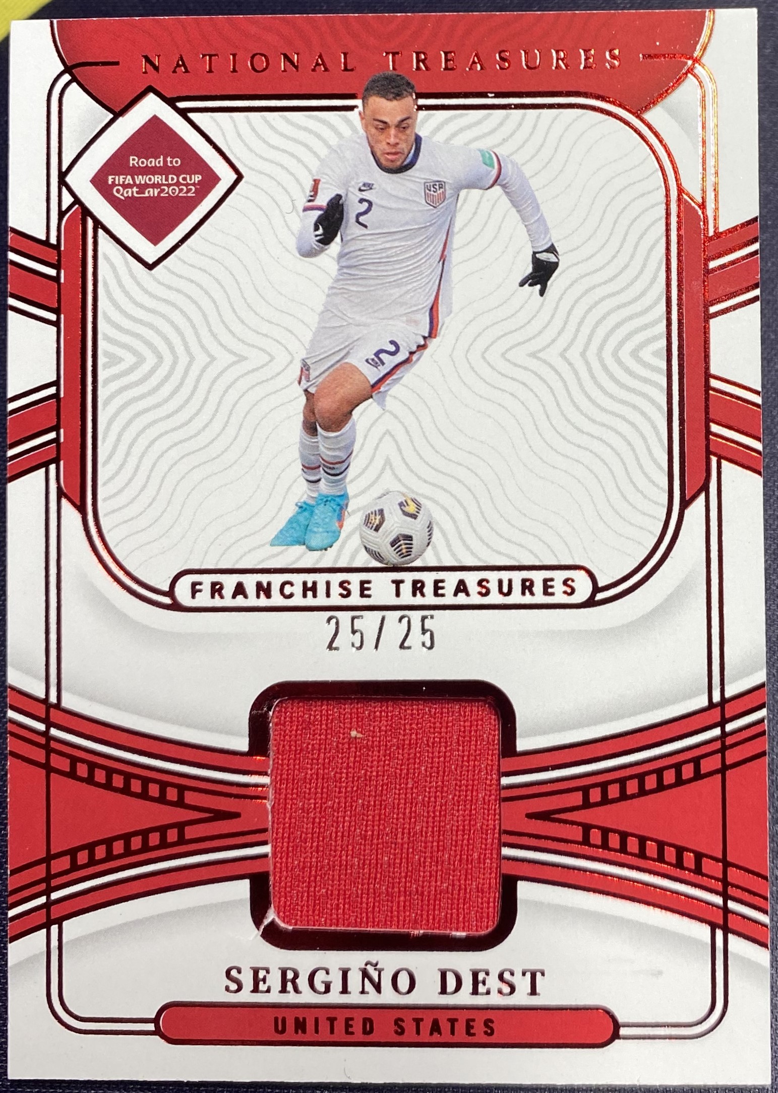 2022 Panini National Treasures Sergino Dest 德斯特 巴塞罗那 美国 国宝 25/25编 尾编 低编物料 落场球衣 AC米兰 PSV埃因霍温 卡品如图 HT