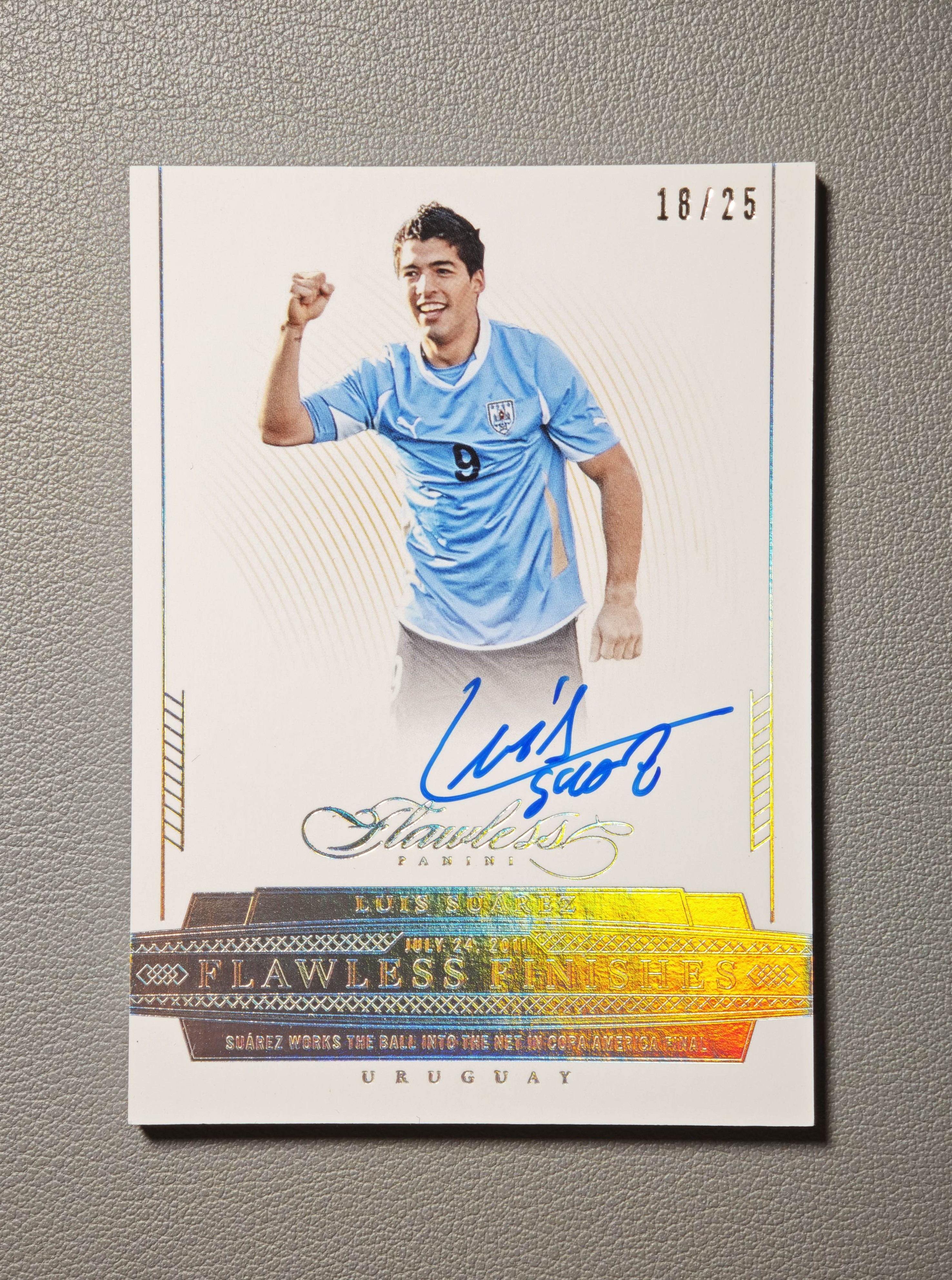 【闪电拍卖】2015-16 Panini Flawless Luis Suarez 手提 乌拉圭 苏亚雷斯 卡签 /25编 Finishes绝杀 签字 银闪版 GLY513