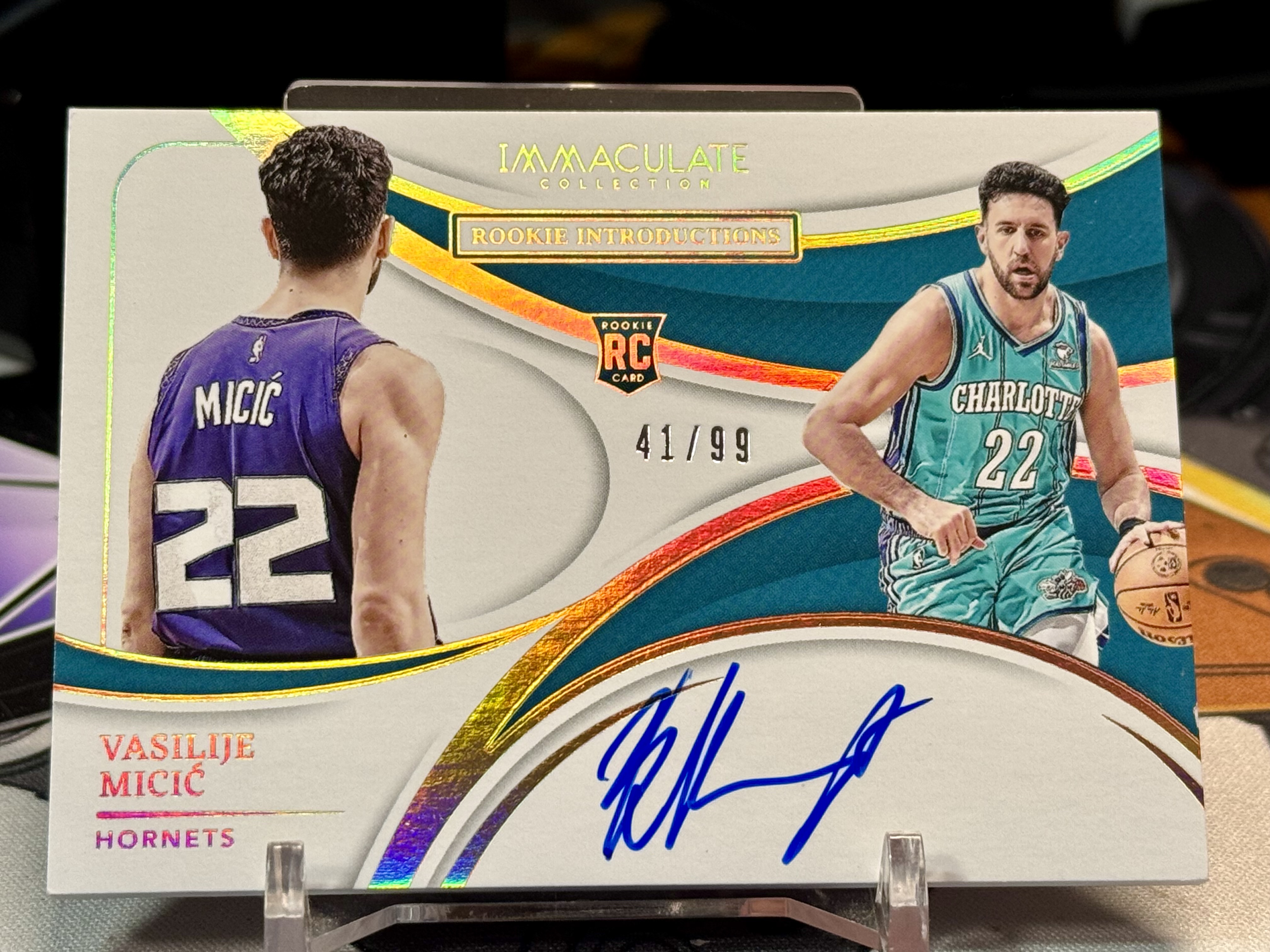(黑猫代卖)2023-24 Panini imm系列 黄蜂 新秀 rc 瓦西里耶·米齐奇(Vasilije Micić)41/99 介绍签 卡签 最具潜力新秀 收藏必备(杨)