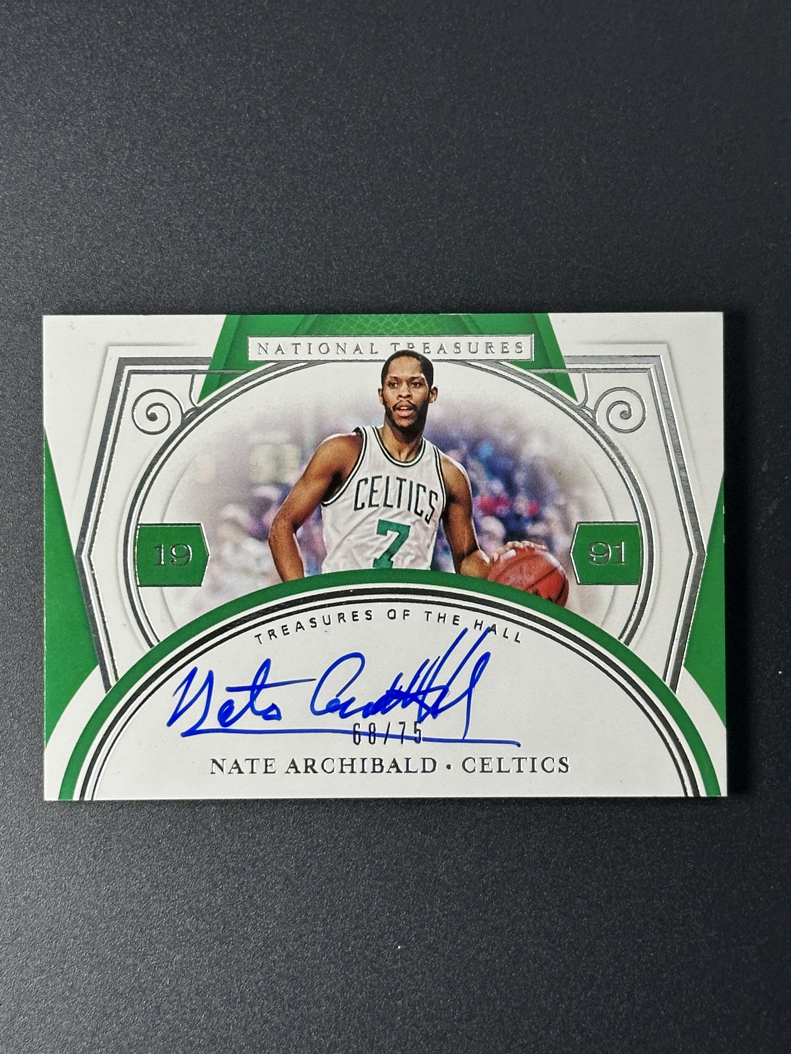 2020-21 Panini National Treasures Nate Archibald 内特 阿奇博尔德 凯尔特人 国宝 75编 签字 卡签 名人堂 横版 微瑕如图-zyk