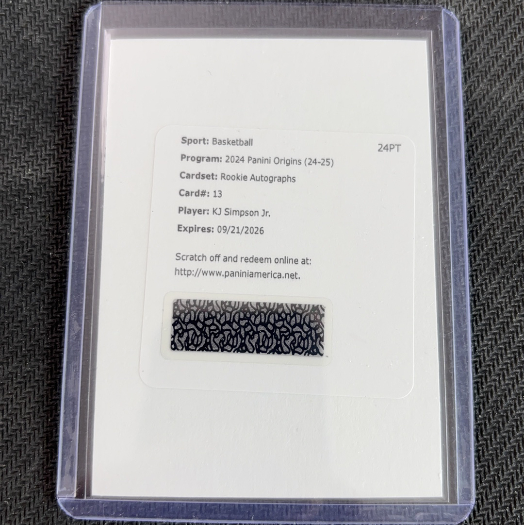 2024-25 Panini Origins KJ Simpson RC 【星锐客拍卖】起源 黄蜂新秀 KJ 辛普森 RA 签字 卡签 交换版 不累计 墨迹如图 卡品如图