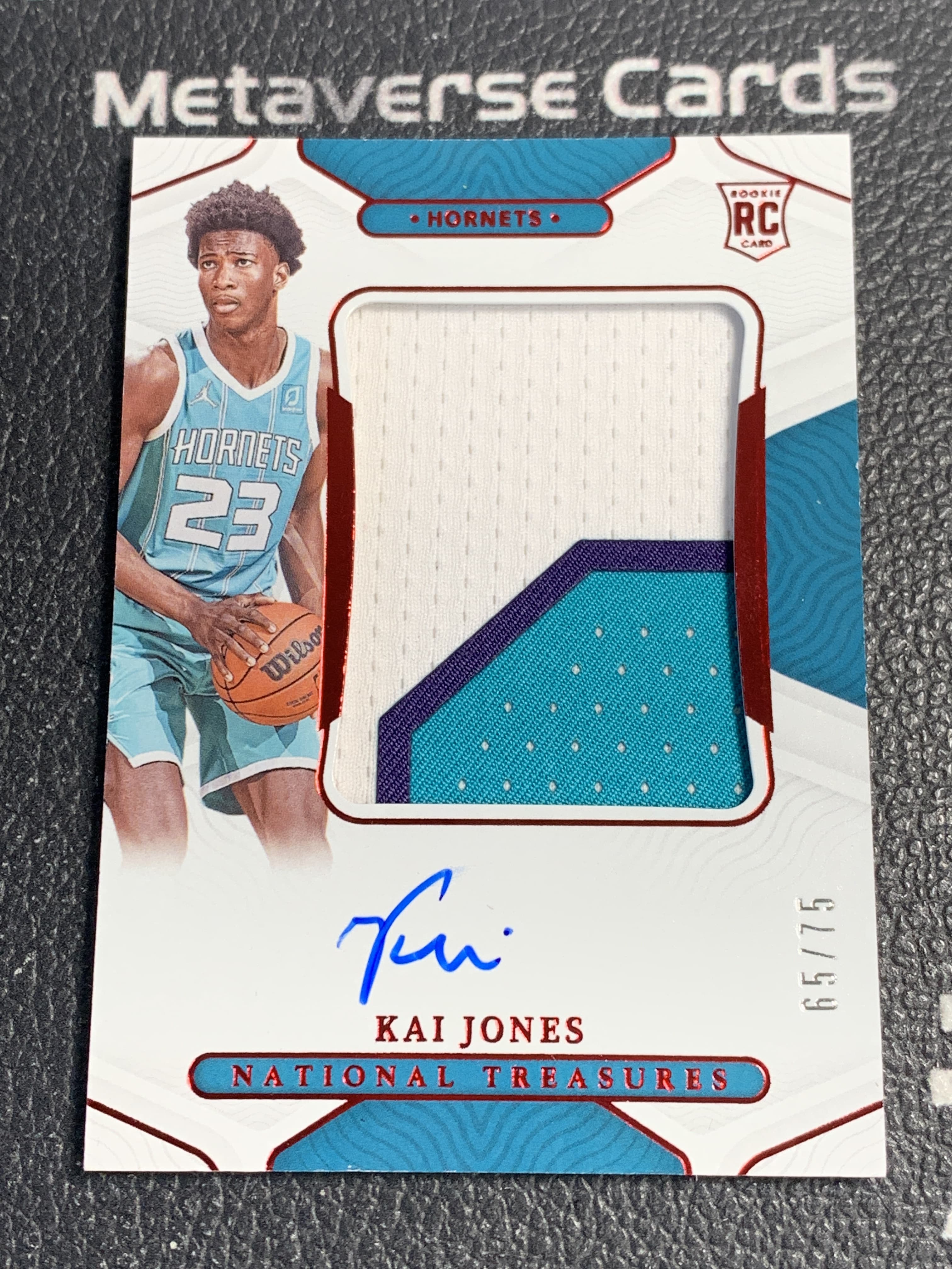 【元宇宙拍卖】江南802:2021-22 Panini National Treasures Kai Jones 国宝 黄蜂 凯 琼斯 RC 新秀 大窗 Patch 签字 正RPA 65/75编 红平行 卡签 微瑕如图 专收收藏必备