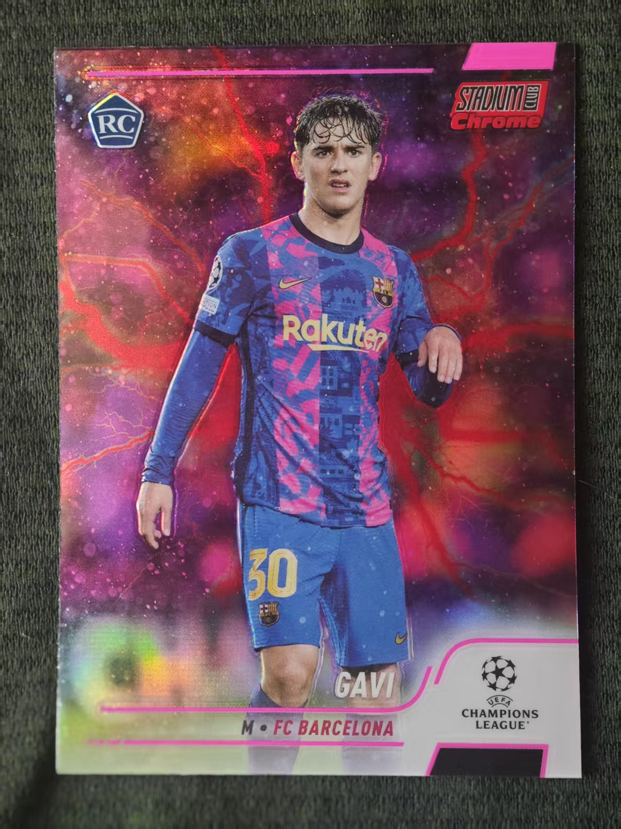 2021-22 Topps Stadium Club Chrome Gavi RC 欧冠竞技场 巴塞罗那 巴萨 西班牙 RC新秀 玉面屠夫 加维 粉闪电折 折射 卡如图【原地起飞卡社】jia5.20