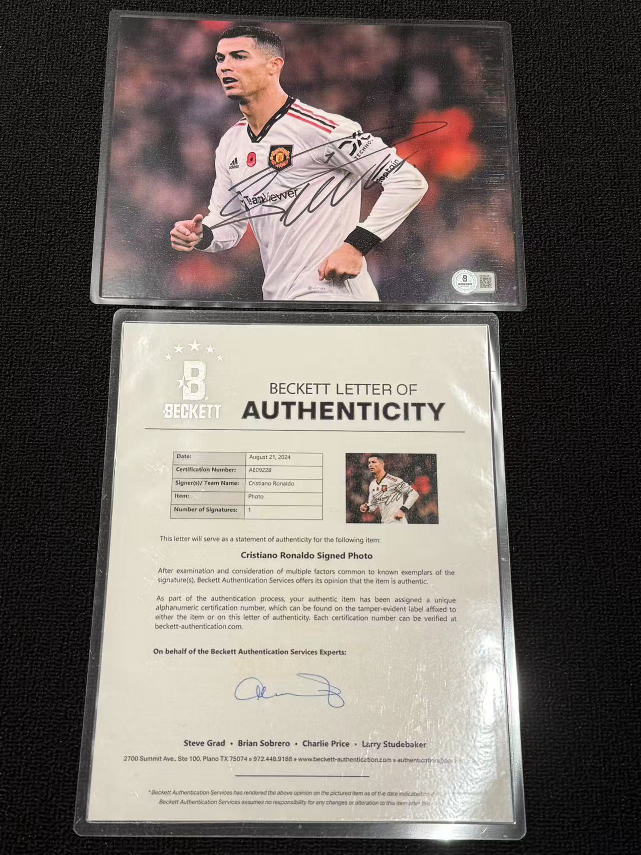 曼联队 c罗 罗纳尔多 小小罗 签名海报 贝克特官方认证 大证书 收藏必备