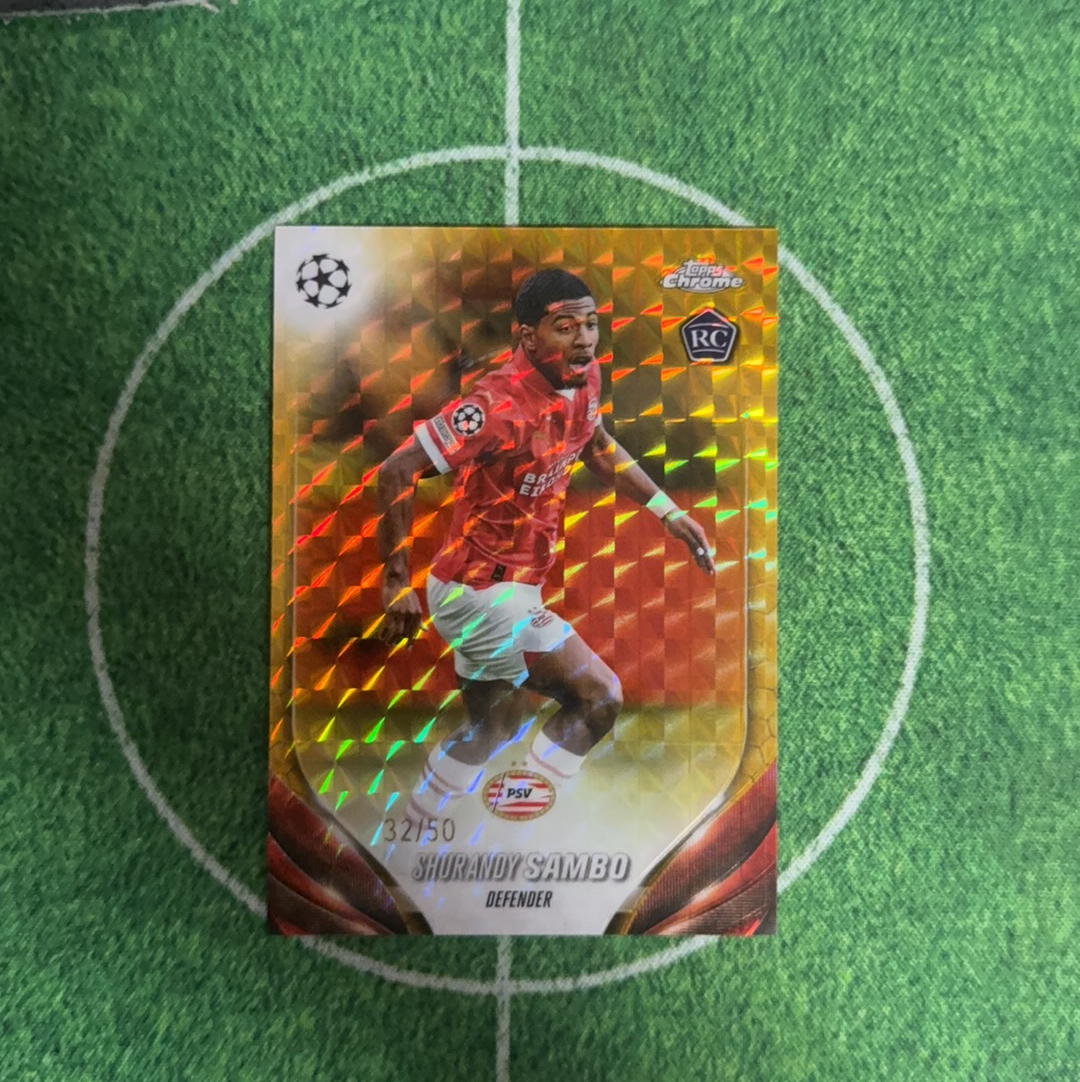 2024 Topps Chrome Shurandy Sambo RC 欧冠 新秀RC 埃因霍温 桑博 32/50编 金折 低编 豪门猎物 未来可期 卡品如图 细节如图