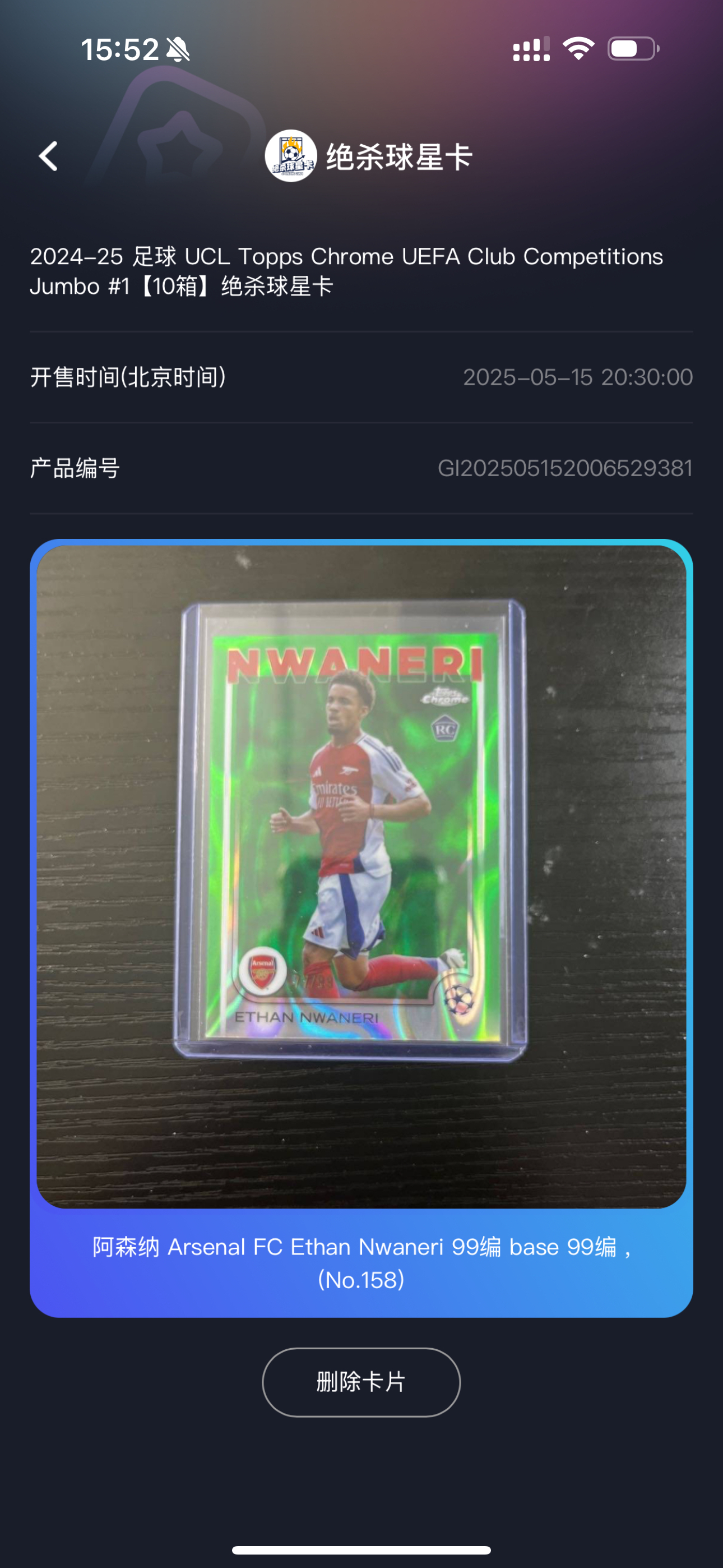 2024-25 Topps Chrome nwaneri RC 恩瓦内里 阿森纳18岁新秀 99编 英格兰