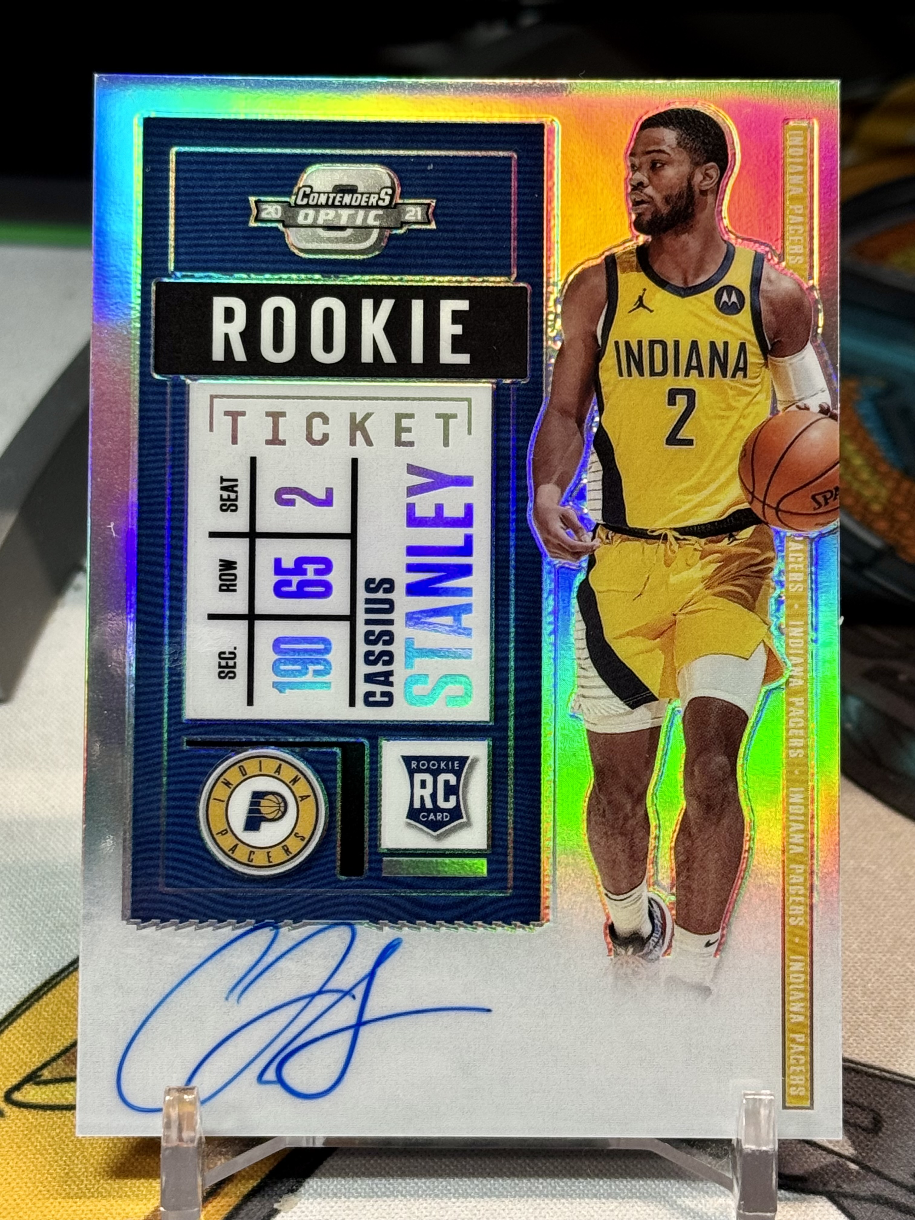 (黑猫代卖)2020-21 Panini op球票系列 步行者 新秀 RC 卡修斯·斯坦利(Cassius Stanley)银折 卡签 新秀签 收藏必备