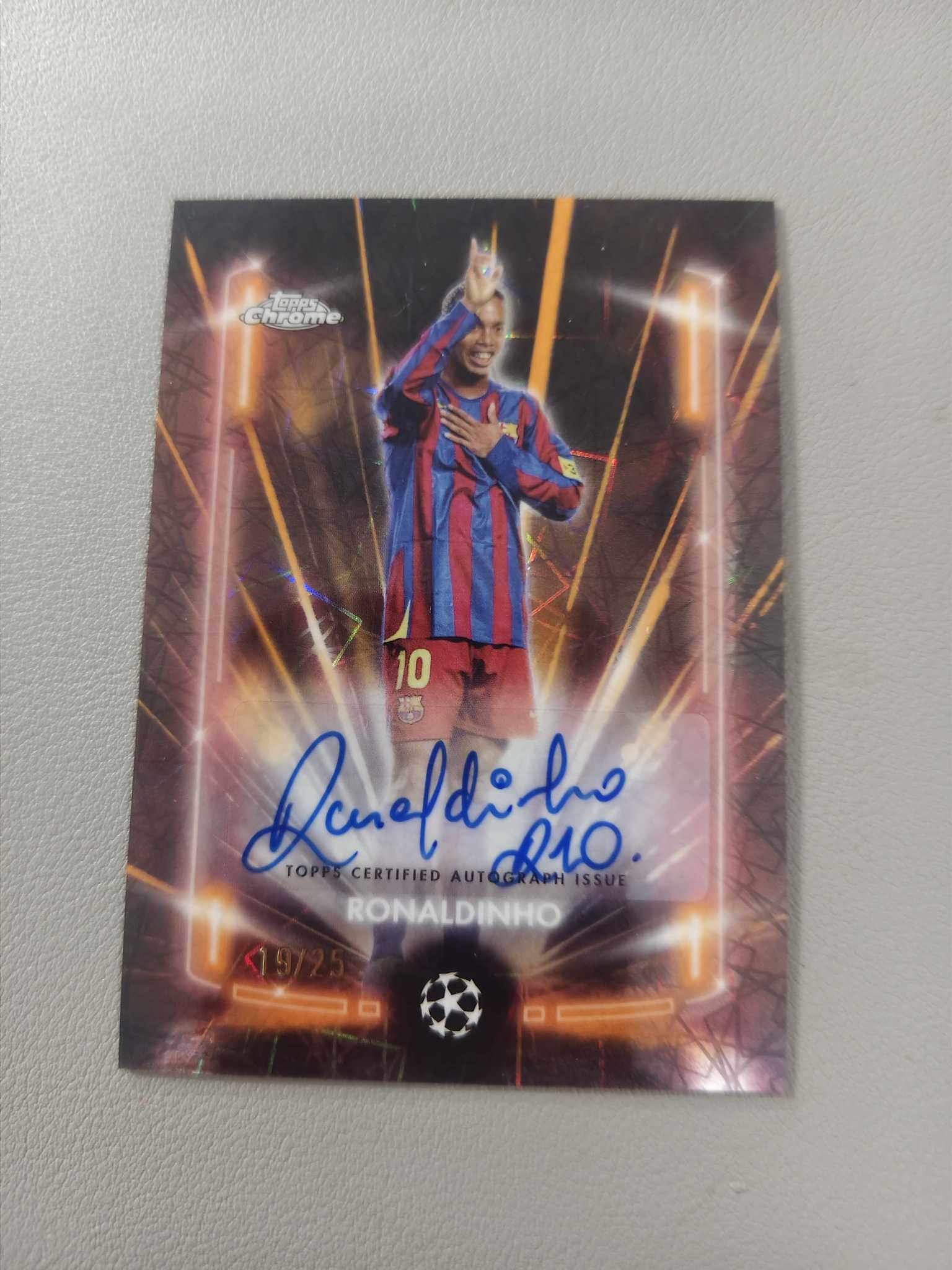 【佩妮拍卖】2025 topps chrome 最新欧战 ronaldinho 小罗 罗纳尔迪尼奥 巴萨 橙折 巨量 镭射 签字 19/25编 卡品如图 拍前请阅读描述 gio0508