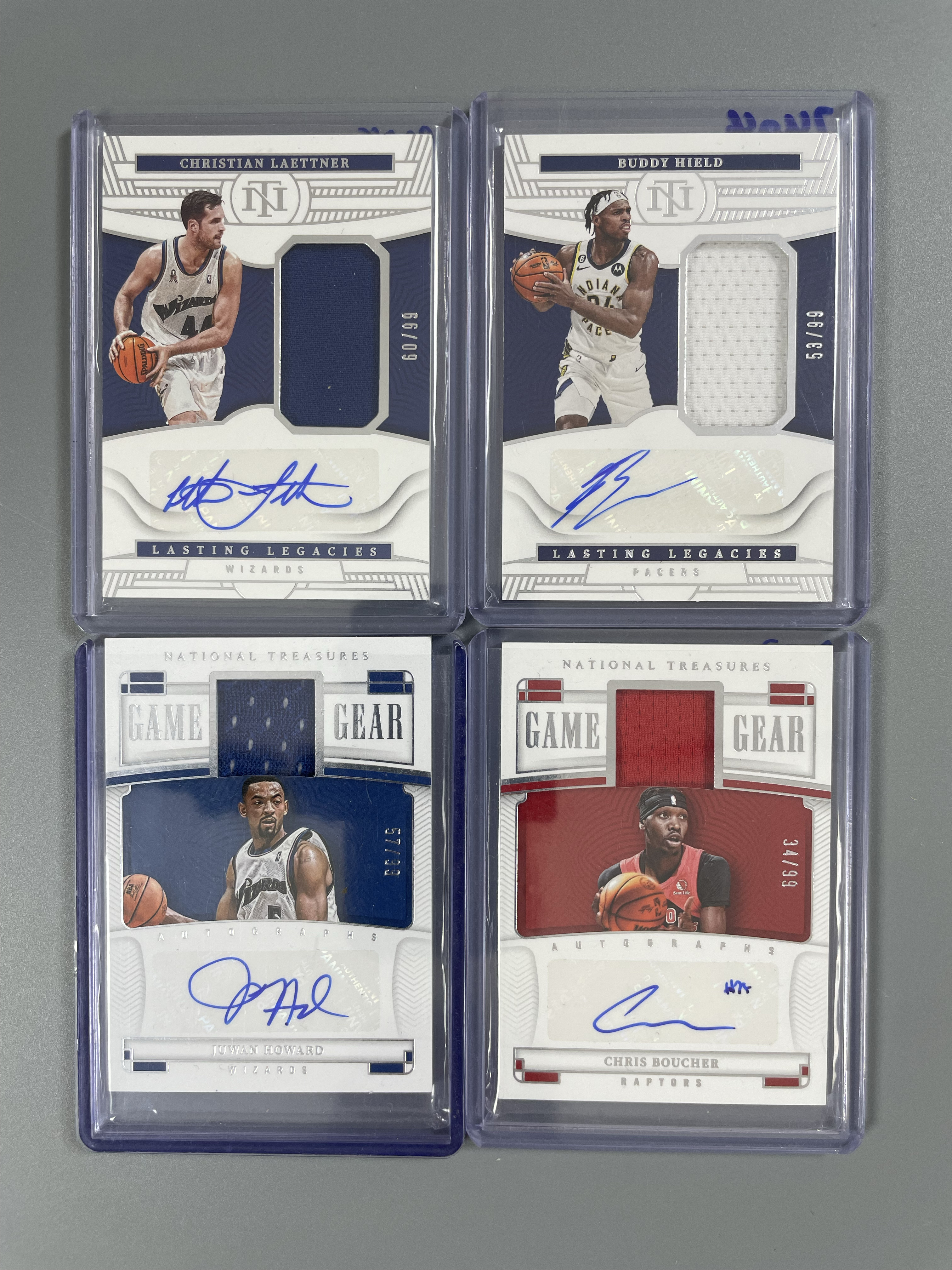 National Treasures 国宝 奇才 克里斯蒂安莱特纳 朱万霍华德 步行者 巴迪希尔德 猛龙 克里斯布歇 /99编 JA 签字 小窗切割亲穿球衣 共4张lot CDC