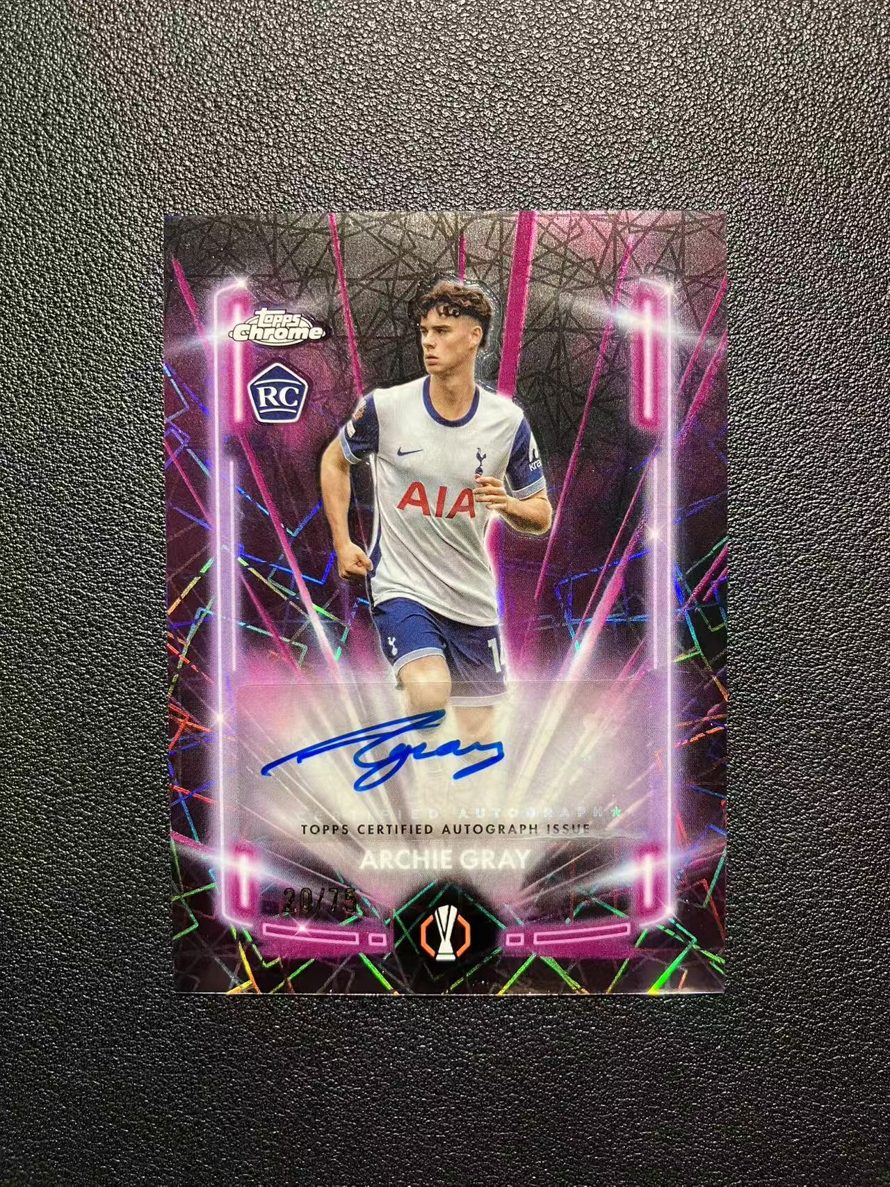 2025 Topps Chrome Archie Gray RC 欧冠TC系列 阿奇-格雷 20/75编 紫折 黑镭射签 签字 RC新秀 英格兰 热刺 未来之星 巨量独占 卡品如图 B190