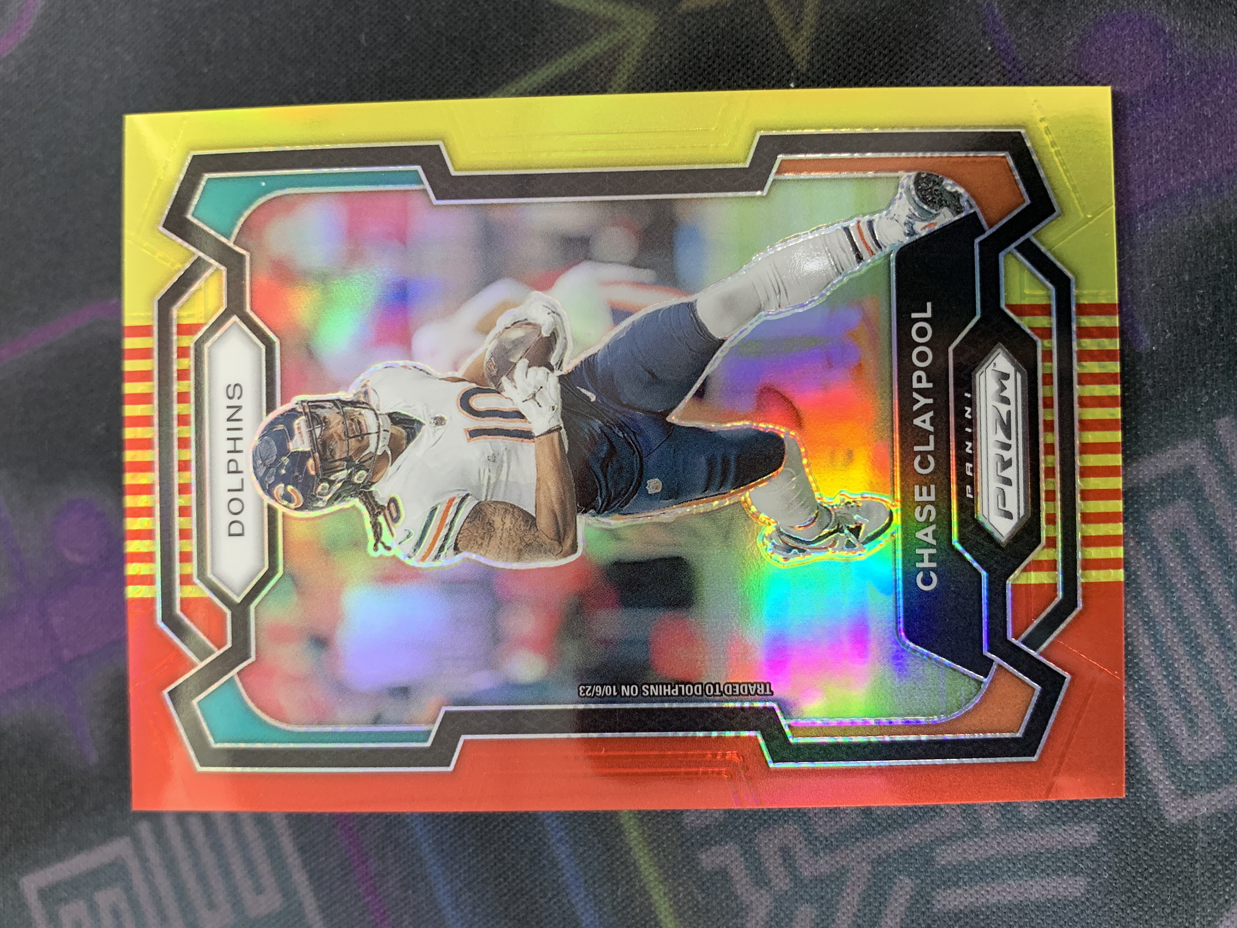 2023 Panini Prizm Chase Claypool 【逸潮玩】NFL 切斯 克雷普尔 迈阿密海豚队 红黄折 折射 同背 限量 10/44编 瑕疵如图 TOO 25