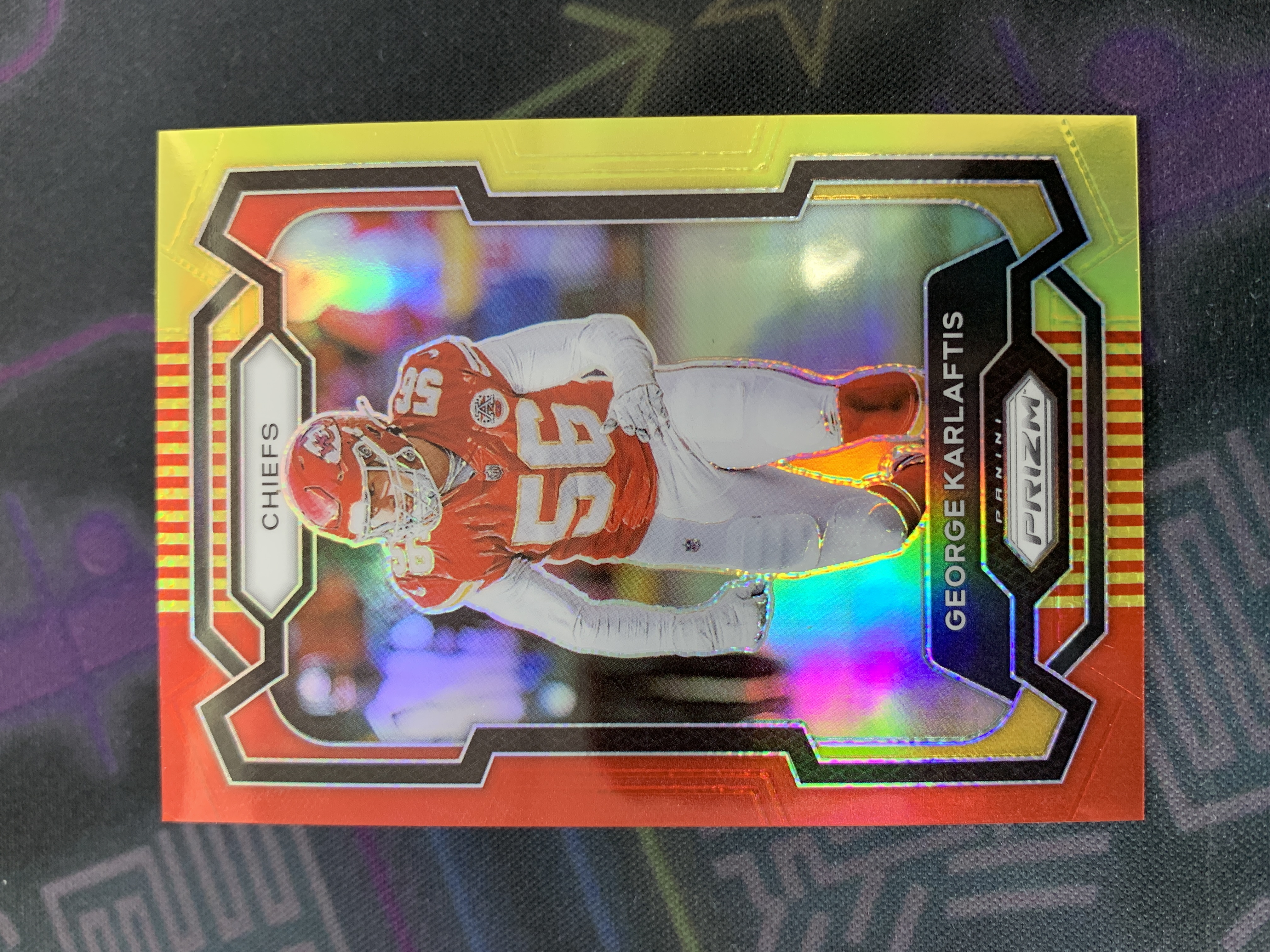 2023 Panini Prizm George Karlaftis 【逸潮玩】NFL 乔治 卡尔拉弗茨 堪萨斯酋长队 红黄折 折射 限量/44编 瑕疵如图 TOO 34