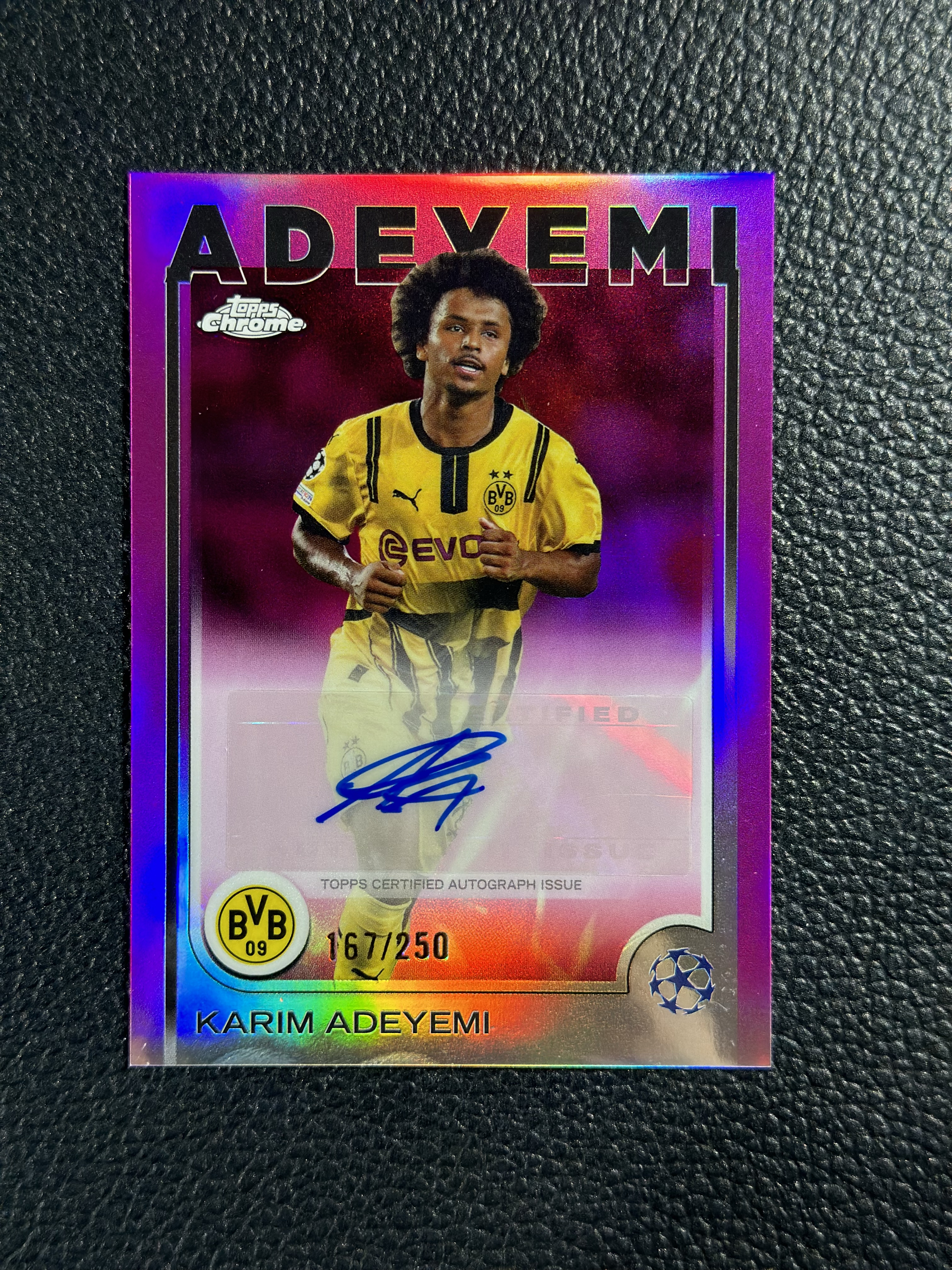 2024-25 Topps Chrome Karim Adeyemi Kacey拍卖欧冠TC 德国多特蒙德神锋 阿德耶米 250编完美签字!收藏必备流浪卡品如图