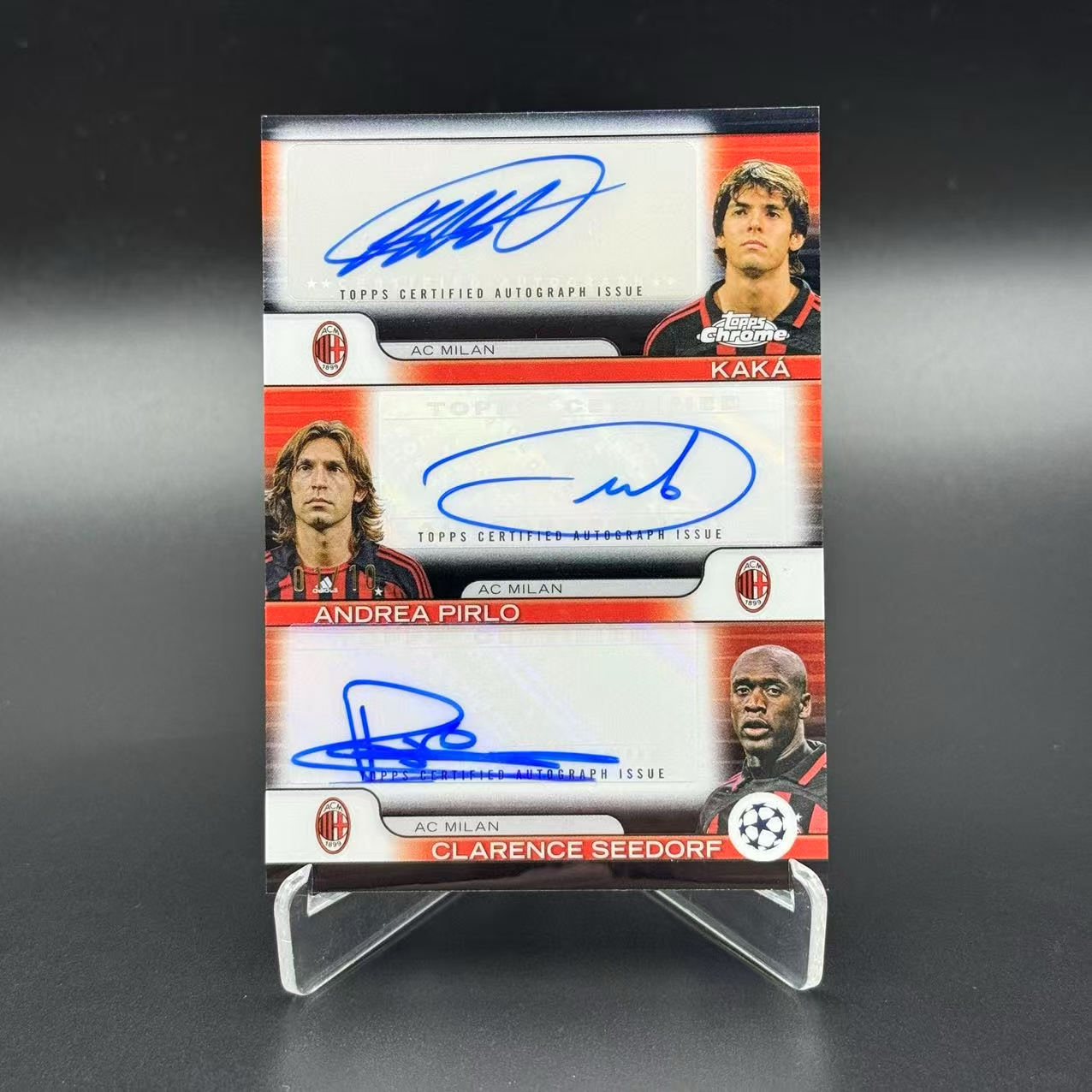 【浩冉拍卖】2025 Topps Chrome足球 欧冠TC Kaka 卡卡 ANDREA PIRLO 皮尔洛 睡皮 SEEDORF 西多夫 AC米兰 01/10编首编 黑折三人签字 三签 名宿陈三岁
