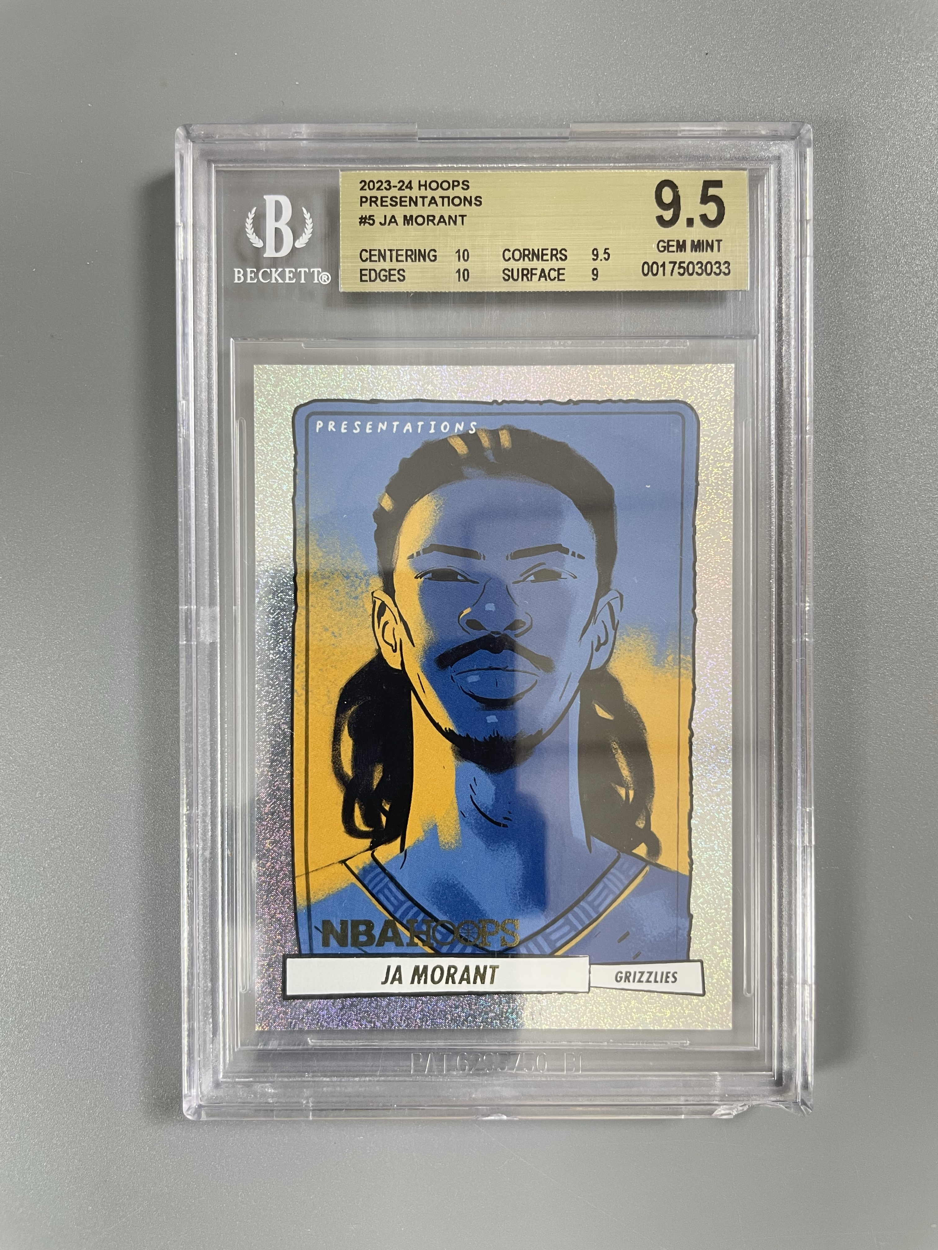 2023-24 Panini Hoops Ja Morant 【月火代卖】灰熊 贾莫兰特 绝世腰王 枪王 大比例SSP 大头特卡 闪版 折射 BGS金标9.5 听风