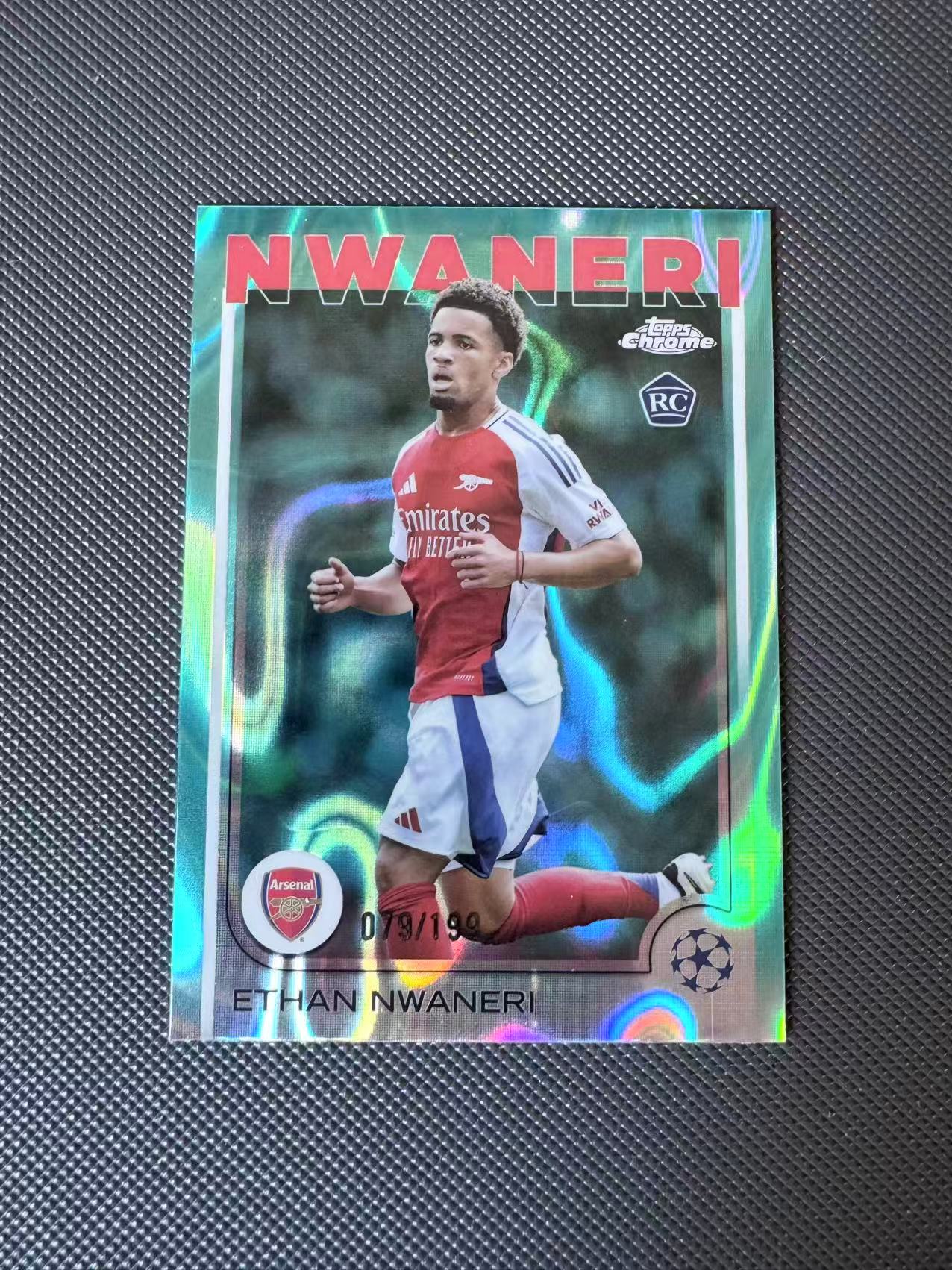 2024-25 Topps Chrome Nwaneri RC 【404NF拍卖】TC系列 欧冠 阿森纳 英格兰 恩瓦内利 恩瓦内里 79/199编 青熔岩折 凑套必备 微瑕如图 -6776冯