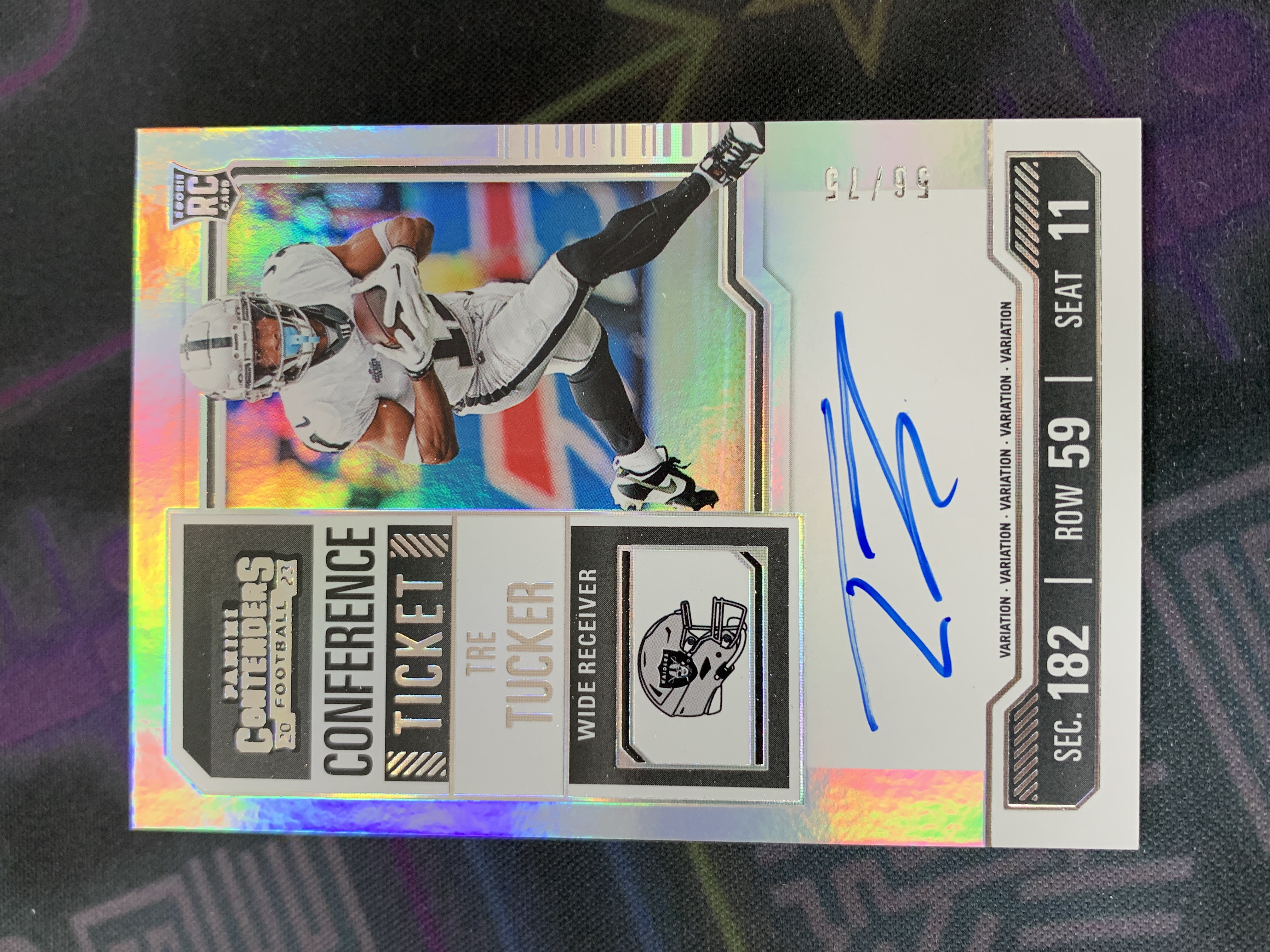 2023 Panini Contenders Tre Tucker RC 【逸潮玩】特雷 塔克 新秀 突袭者队 球票 签字 签名 卡签 银折 折射 限量/75编 瑕疵如图 TOO 16