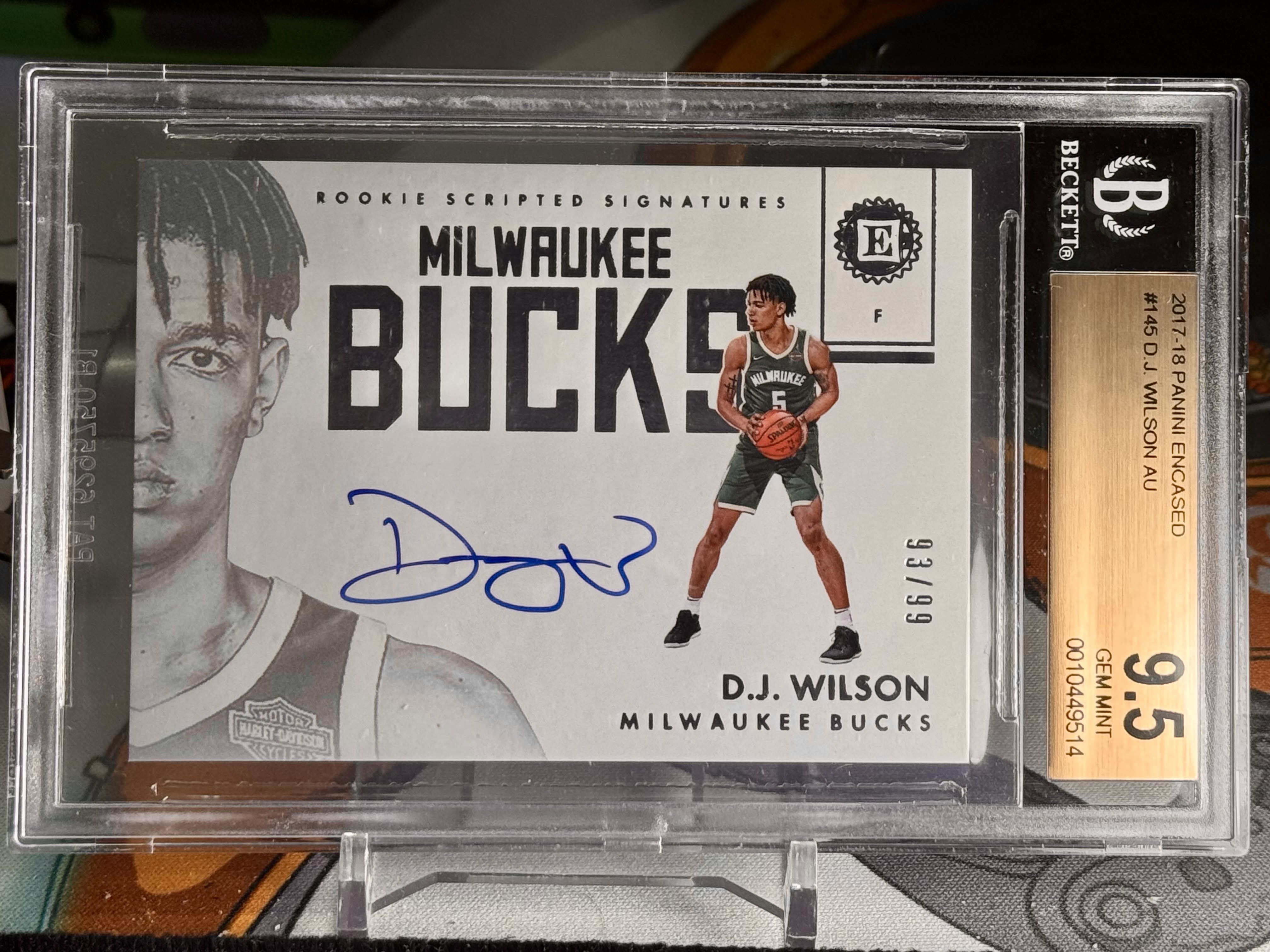 (黑猫代卖)2017-28 Panini 云端系列 雄鹿 新秀 RC D.J.威尔逊(D.J. Wilson)93/99 卡签 cba 上海队当家球星 未来潜力无限 bgs9.5/10 收藏必备