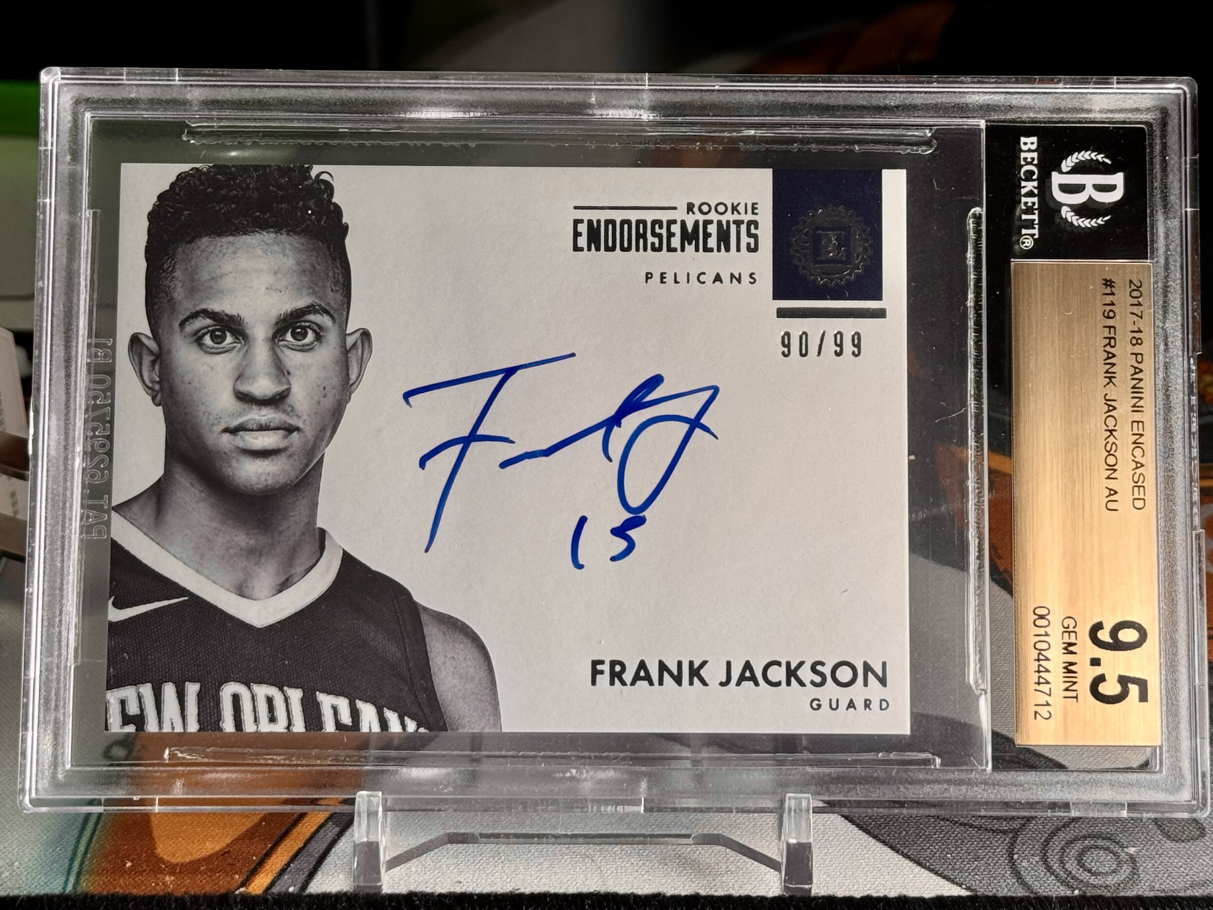 (黑猫代卖)2017-28 Panini 云端系列 鹈鹕 新秀 RC 弗兰克·杰克逊(Frank Jackson)90/99 卡签 cba 名宿 bgs9.5/10 收藏必备