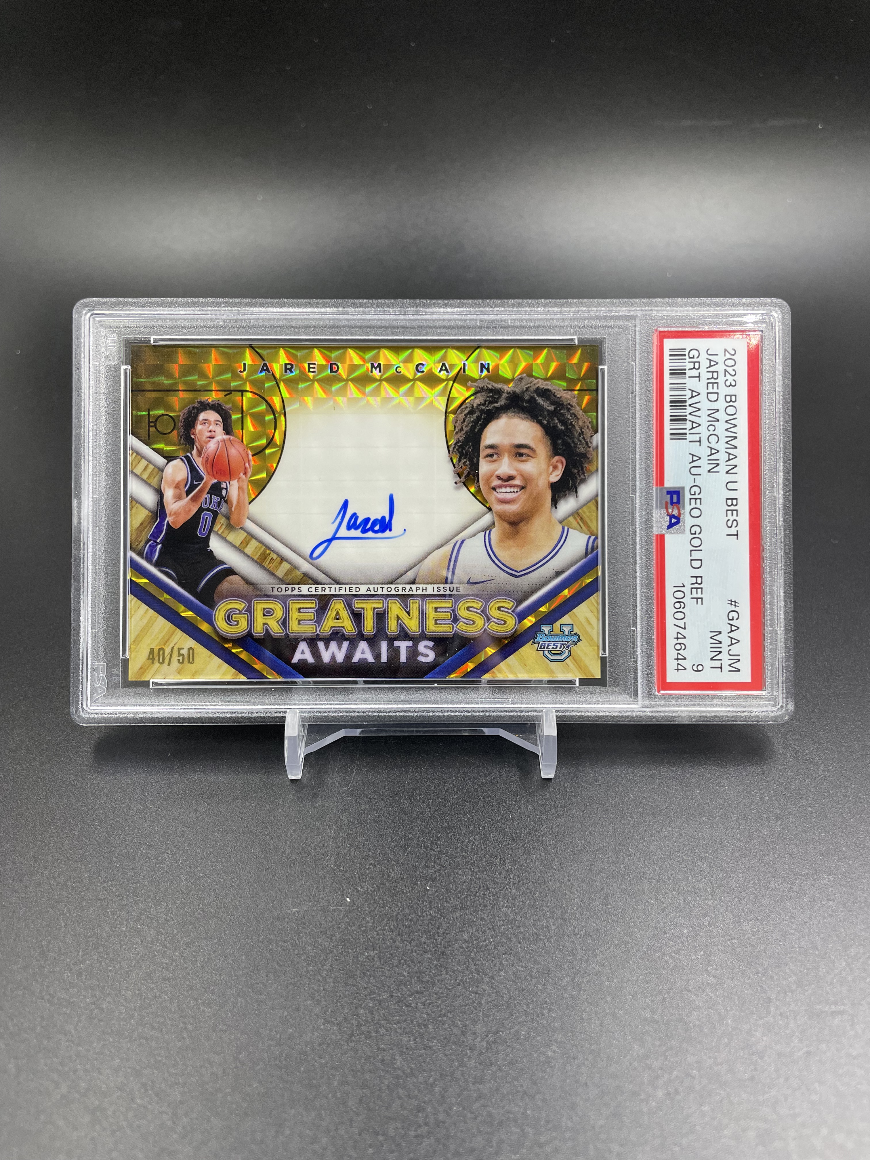 2023 Panini Bowman's Best Jared McCain RC 40【超级拍卖】大学 贾里德 麦凯恩 小魔仙 新秀 折射 金格子折 签字 卡签 50编 PSA9 评级卡 卡壳有划痕