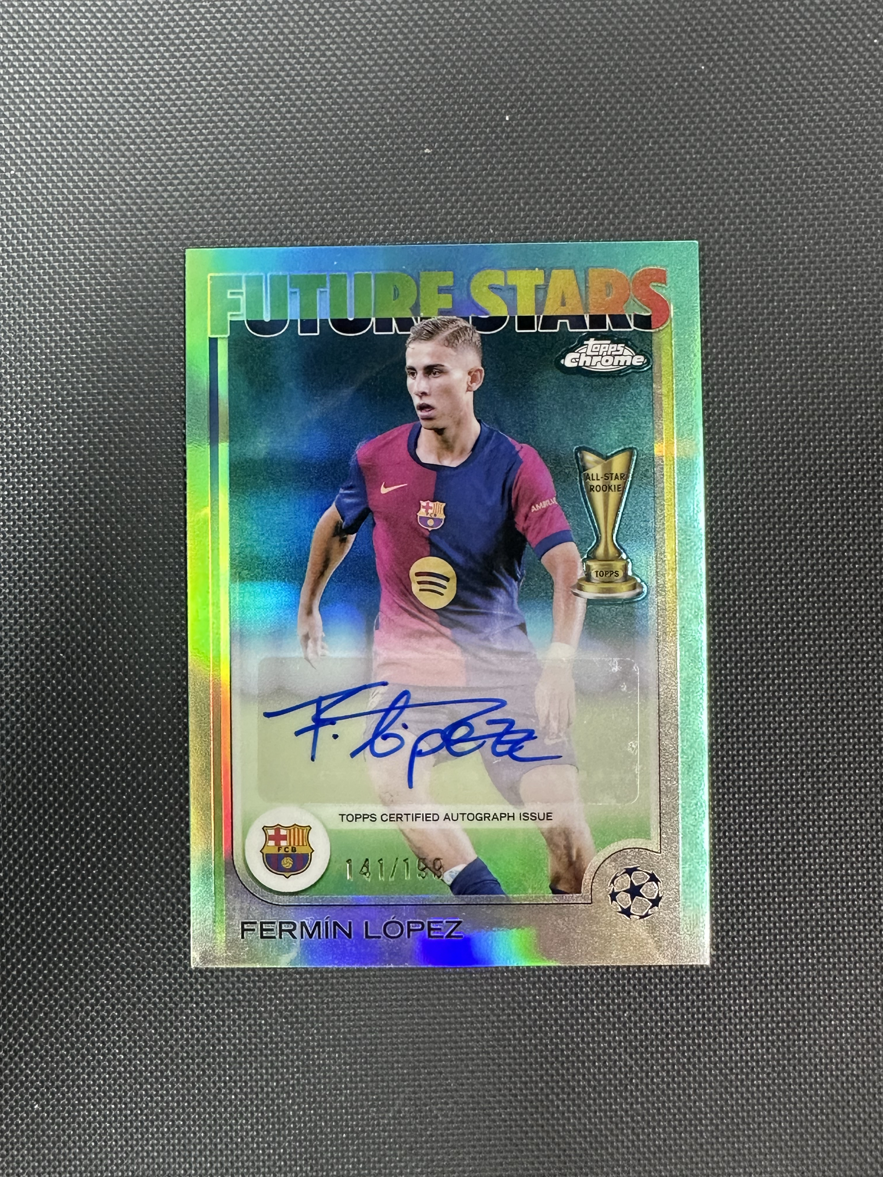 2024-25 Topps Chrome Fermín López RC Cu代卖甘 欧战Tc 费尔明 洛佩斯 西班牙 新秀 Fs签 未来之星签 签字 青折 141/199编 巴萨 折射 卡品如图三四