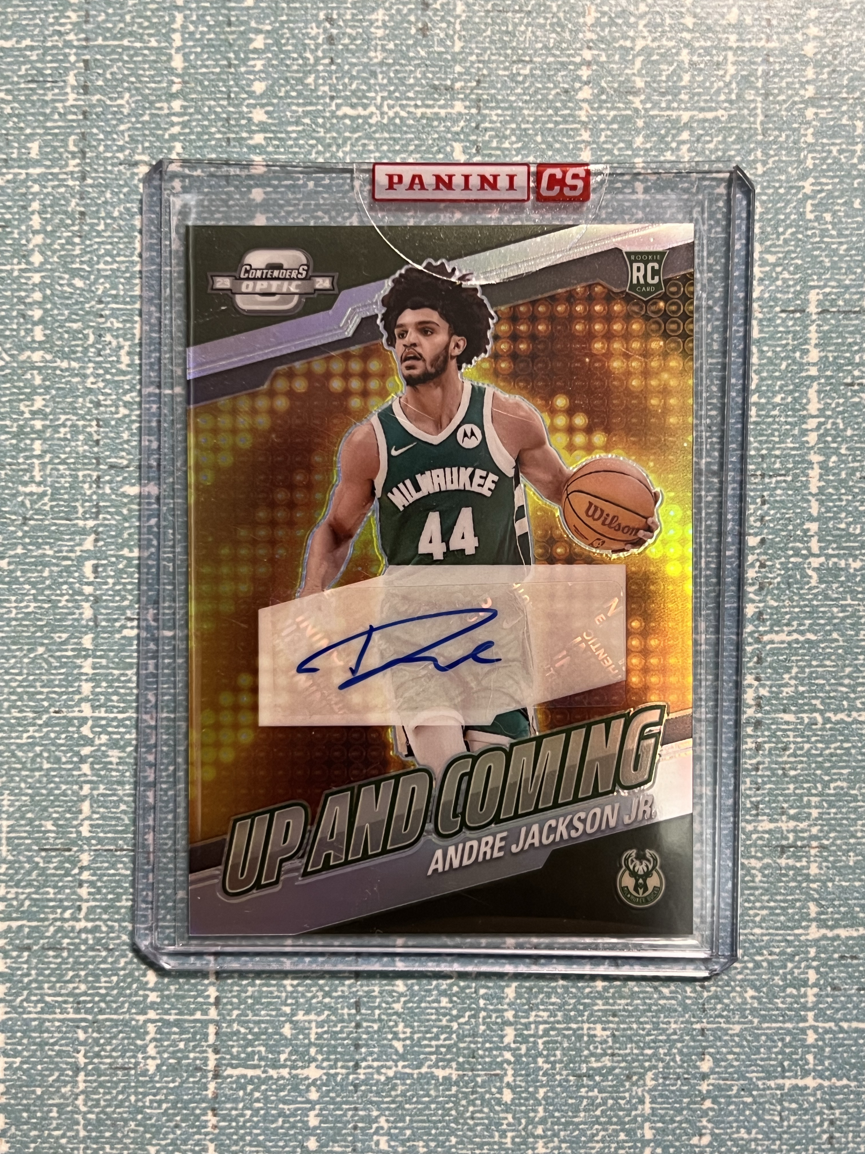2023-24 Panini Contenders Optic Andre Jackson Jr. RC 球票 op 雄鹿 小安德烈 杰克逊 新秀 签字 银折 45/125编 贴签 交换板原封夹
