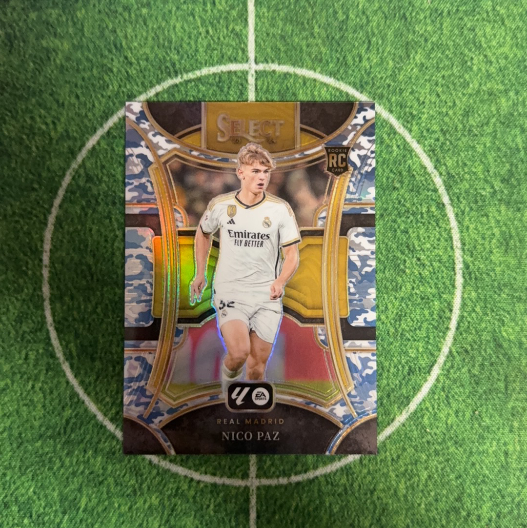 2023-24 Panini Select NICO PAZ RC 皇马 新秀RC 尼科 帕斯 帕玆 99编 稀少 蓝迷彩折 阿根廷国家队助攻梅西破门 欧冠已进球 科莫 意甲过人王 豪门猎物 细节如图