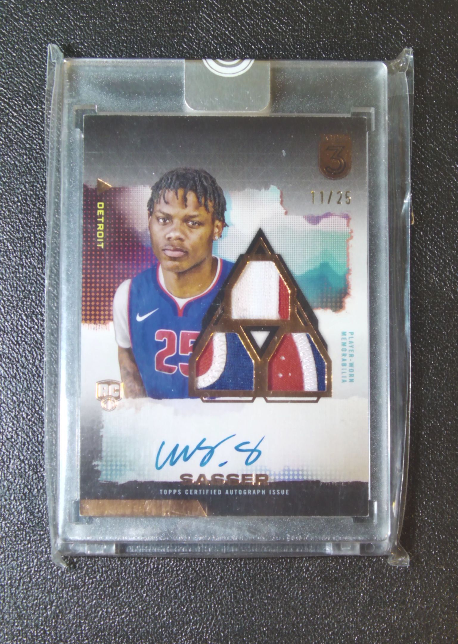 2024 Topps Three Marcus Sasser RC 马库斯 萨瑟 活塞 Three系列 正RPA 25编 卡签 新秀物料签字 亲穿 Clay 流通微瑕 投资收藏最佳 凑套必备