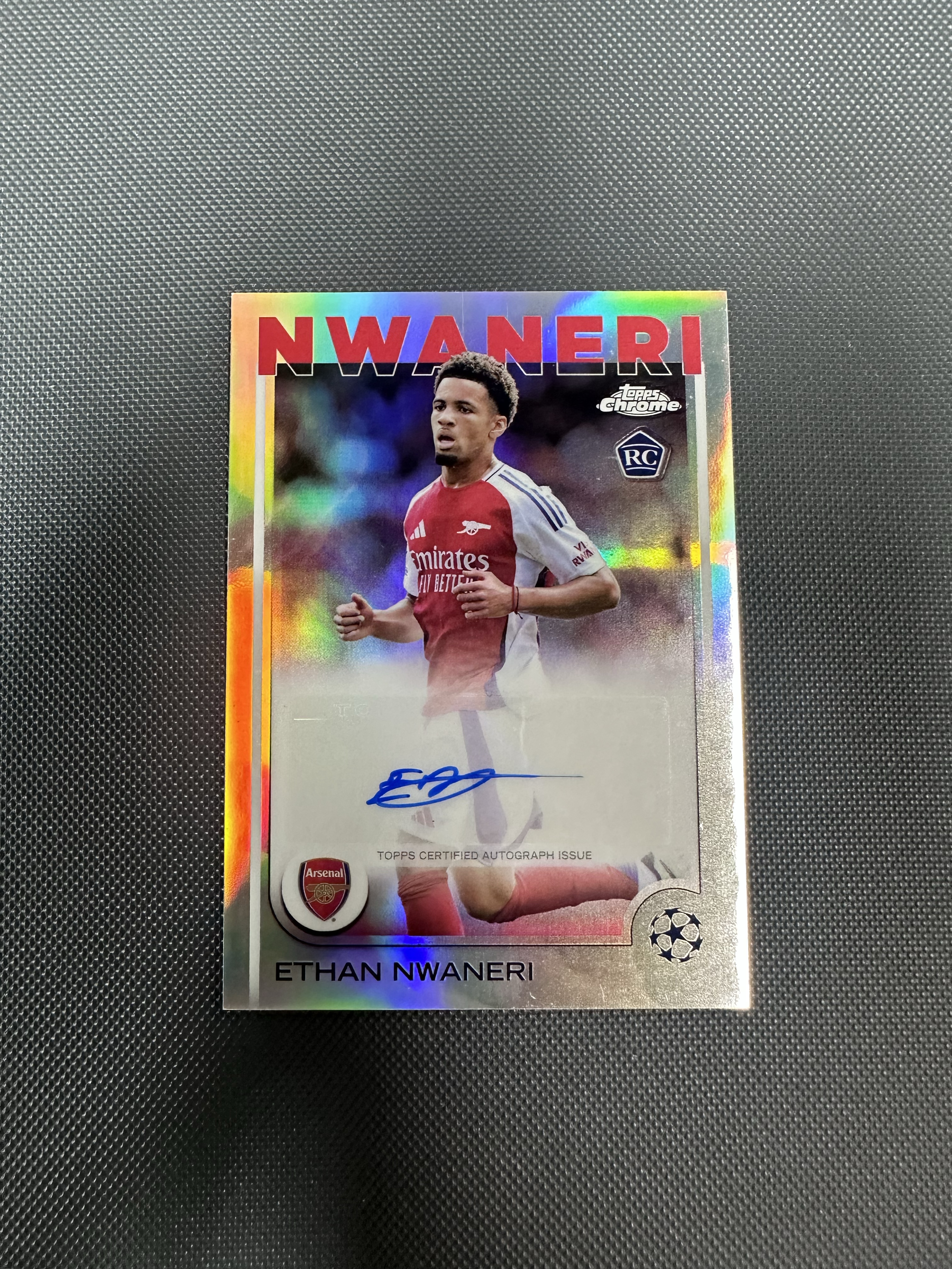 2024-25 Topps Chrome Ethan Nwaneri RC cu代卖豪 欧战 Tc 新秀 阿森纳 伊森 恩瓦内里 签字 base签 银折 折射 印刷线细节如图
