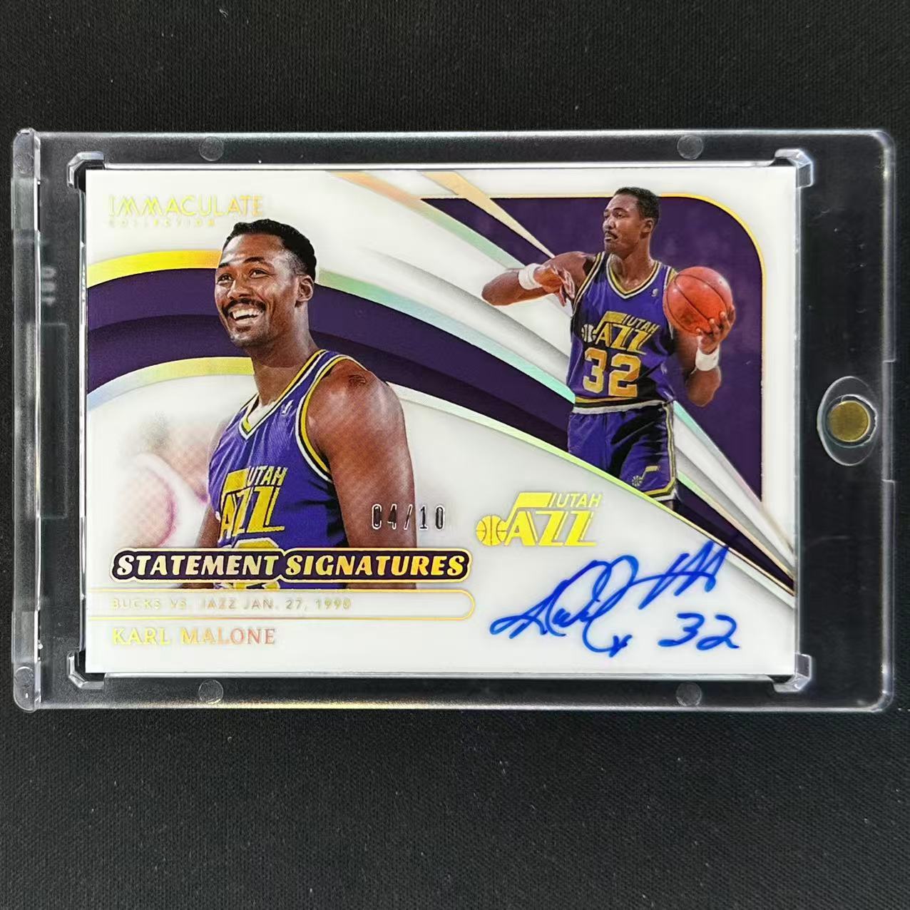 【北京宋拍】富察 2023-24 Panini immaculate Karl Malone 卡尔 马龙 04/10编 签字 金版 镜面 闪版 Statement 宣告签 宣言签 卡签 大头 横版
