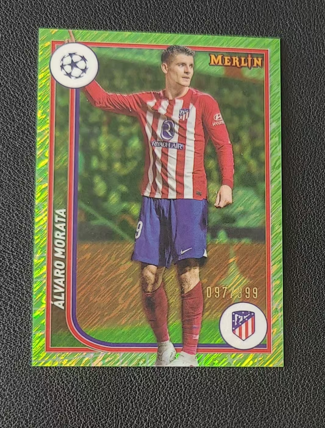 2023-24 Topps Merlin chrome Alvaro Morata (钰钰代拍)欧冠 梅林 马德里竞技 莫拉塔 97/399编 绿折 卡品如图 拍前看描述 OIU111