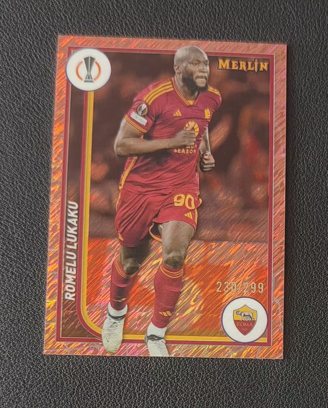 2023-24 Topps Merlin chrome Romelu Lukaku (钰钰代拍)欧冠 梅林 罗马 卢卡库 230/299编 玫瑰金折 卡品如图 拍前看描述 OIU111