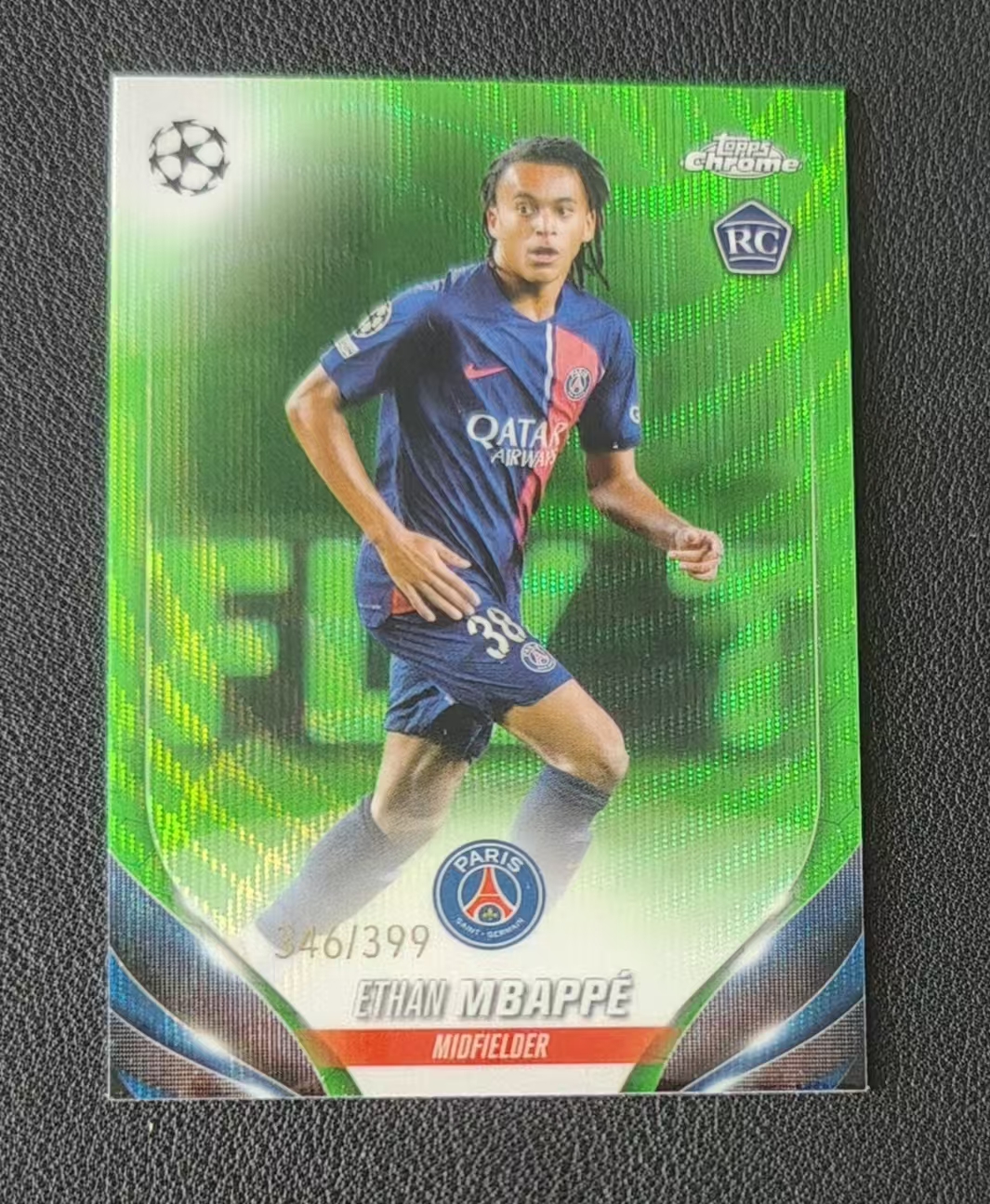 2021-22 Topps Chrome Ethan Mbappe RC (钰钰代拍)欧冠TC 巴黎圣日耳曼 埃唐 姆巴佩 新秀 346/399编 绿波纹折 卡品如图 拍前看描述 OIU111