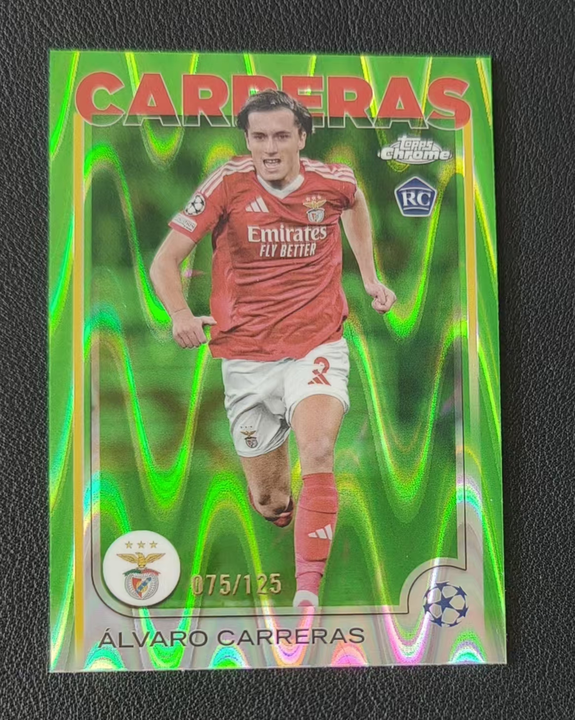 2024-25 Topps Chrome carreras RC (钰钰代拍)欧冠TC 本菲卡 卡雷拉斯 新秀 75/125编 绿波纹折 瑕疵如图 拍前看描述 TYU111