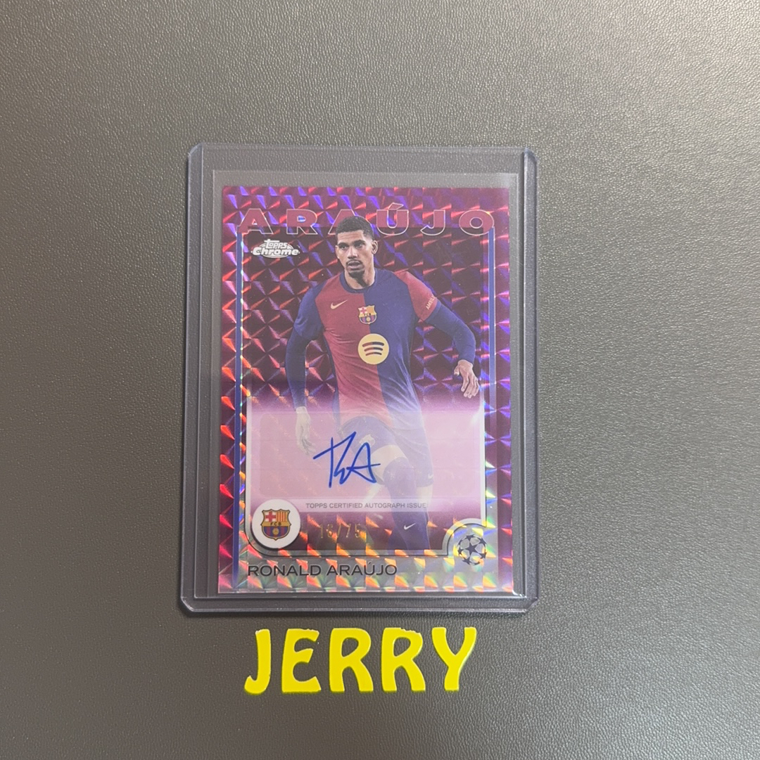 2024-25 Topps Chrome Ronald Araujo 欧冠 欧战 tc 巴萨 巴塞罗那 阿劳霍 16/75编 品红折 格子折 签字 【vay】