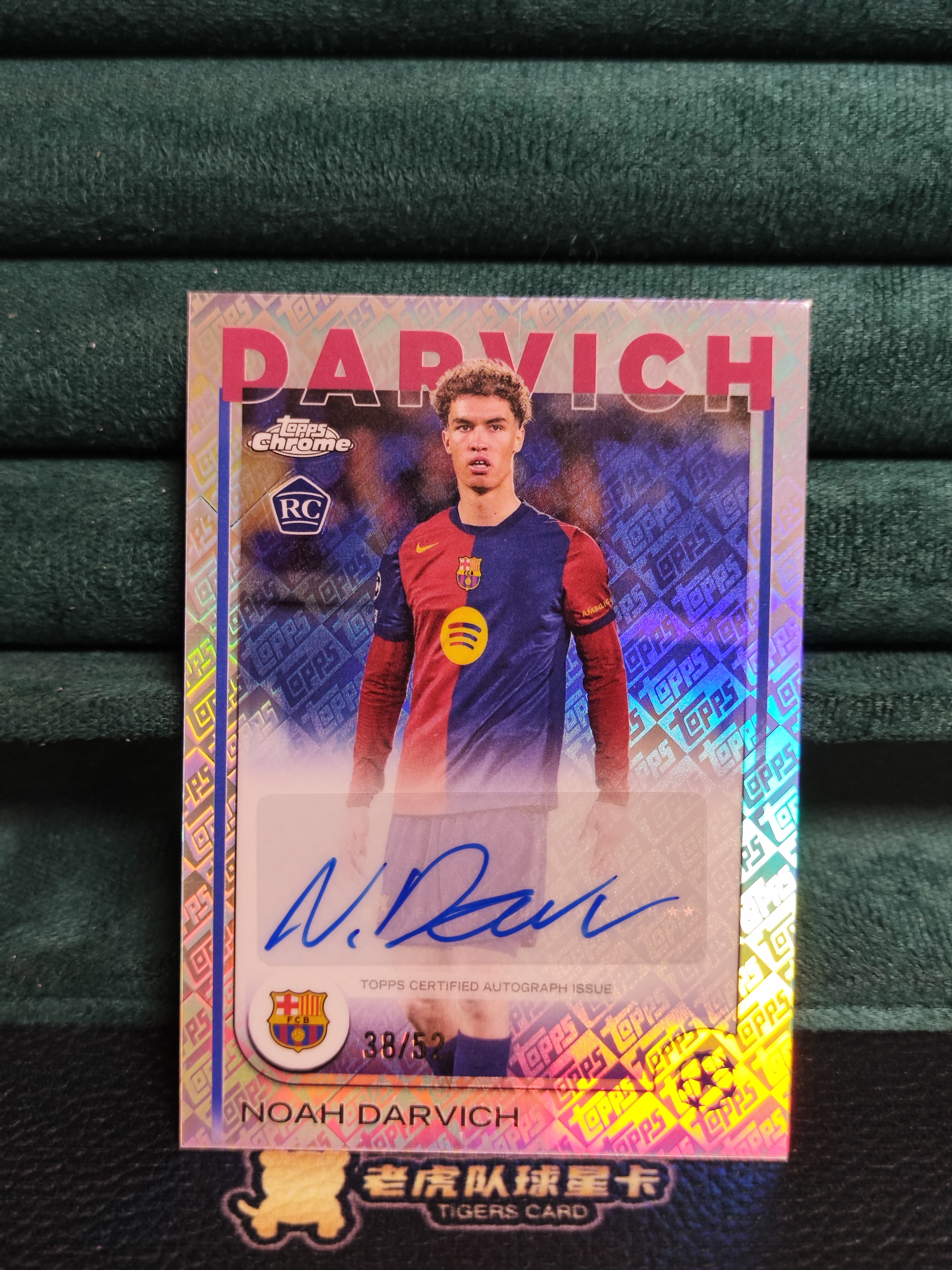 2024-25 【老虎队 海布里】topps chrome noah darvich RC 欧冠tc 达尔维奇 签字 topps折 分形折 38/52编 巴萨 巴塞罗那 新秀 微瑕 z