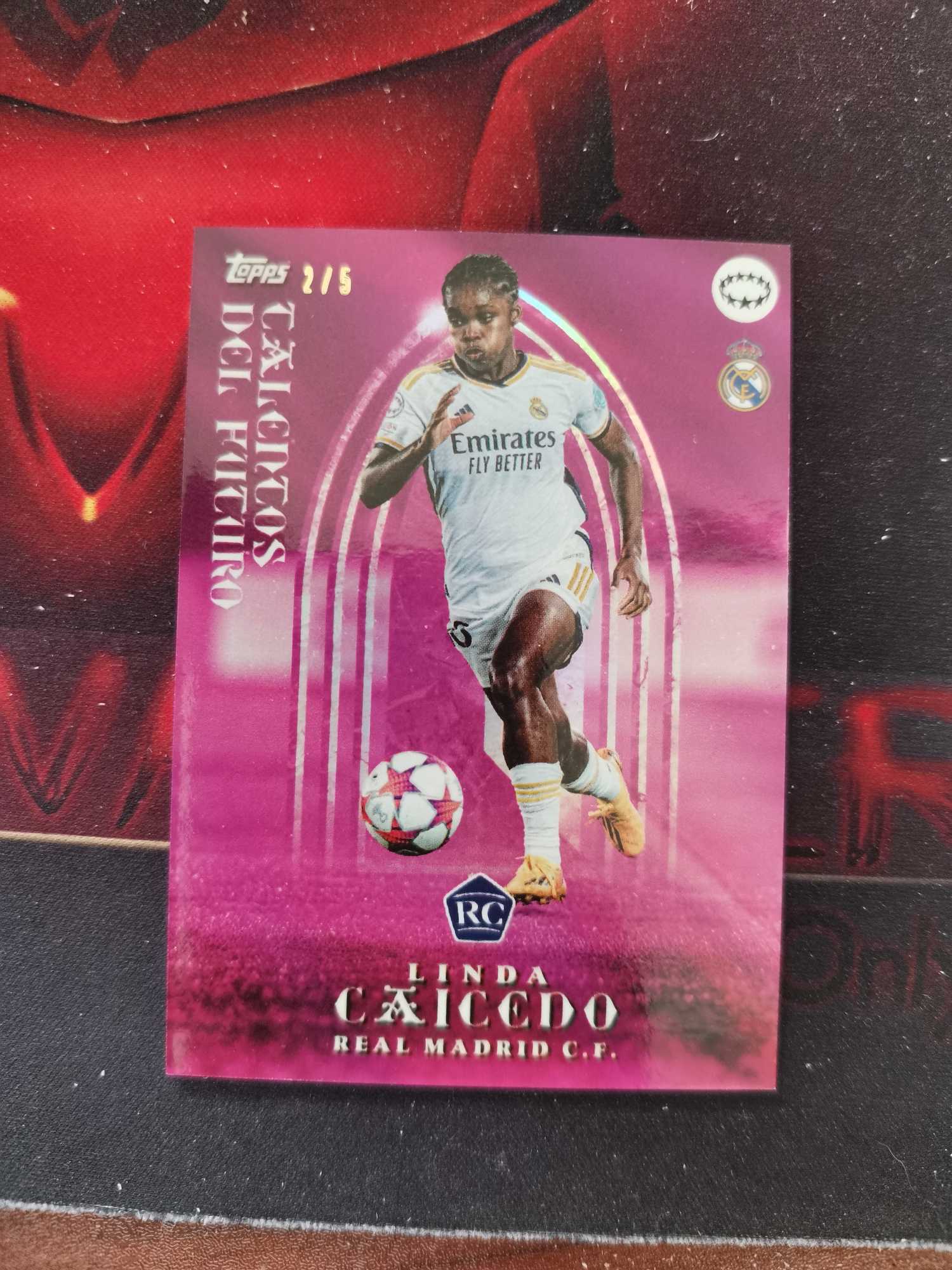 2024 Topps 邦马蒂白金盒 Linda caicedo RC 欧冠女足 哥伦比亚 皇马 琳达 凯塞多 前锋神射 RC新秀未来可期 潜力巨大 2/5编超低编 必备胡嘉兴发不合并