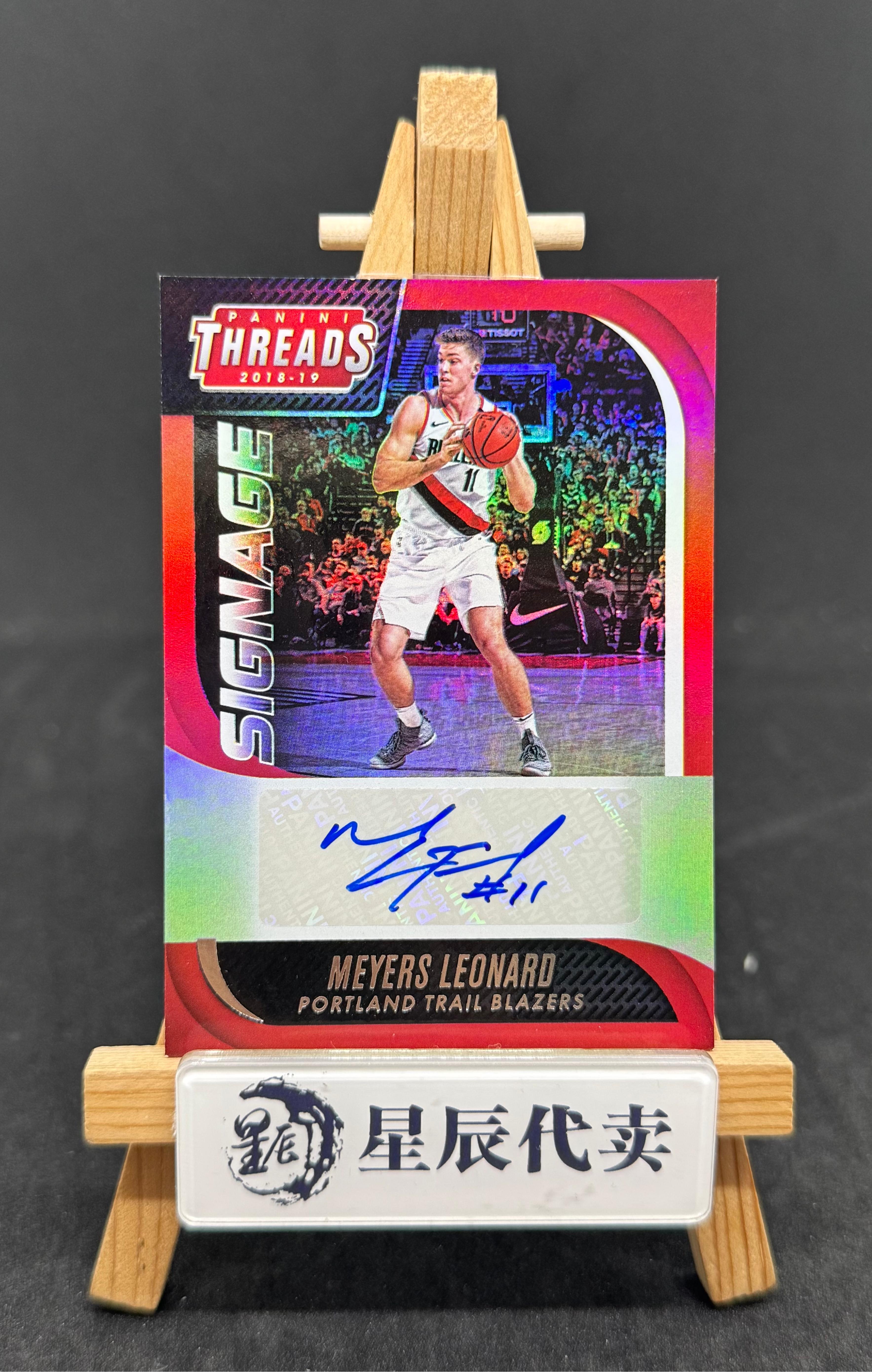 2018-19 Panini Threads Meyers Leonard 【星辰代卖】开拓者 梅耶斯 伦纳德 折射 背号签 签字 白边角 M47FZZF