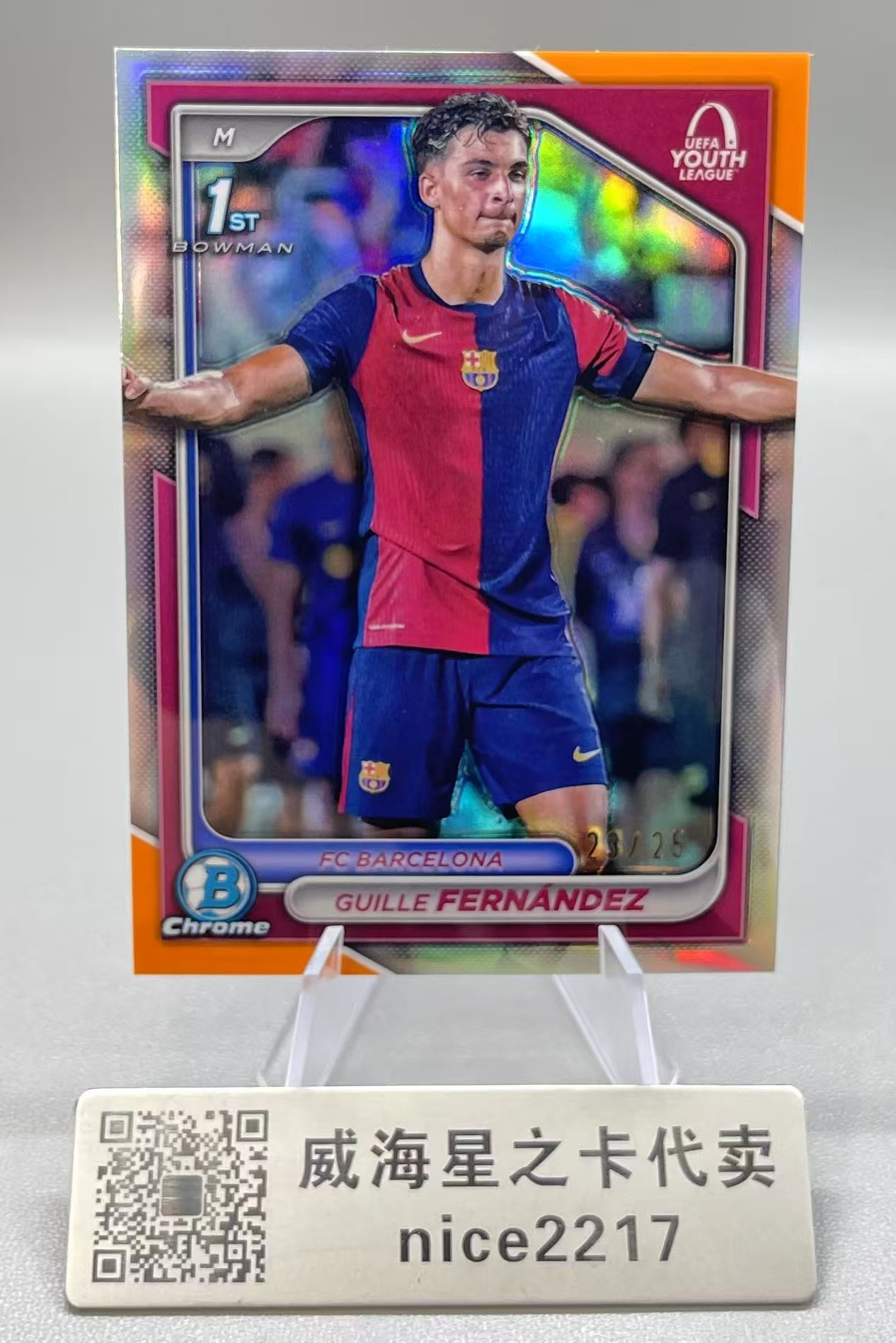 2025 Topps Boman Chrome Guille Fernandez 【威海星之卡】欧冠欧战 西甲 巴萨巴塞罗那 吉尔费尔南德斯 23/25编 橙折射 银折射 瑕疵看图得故25