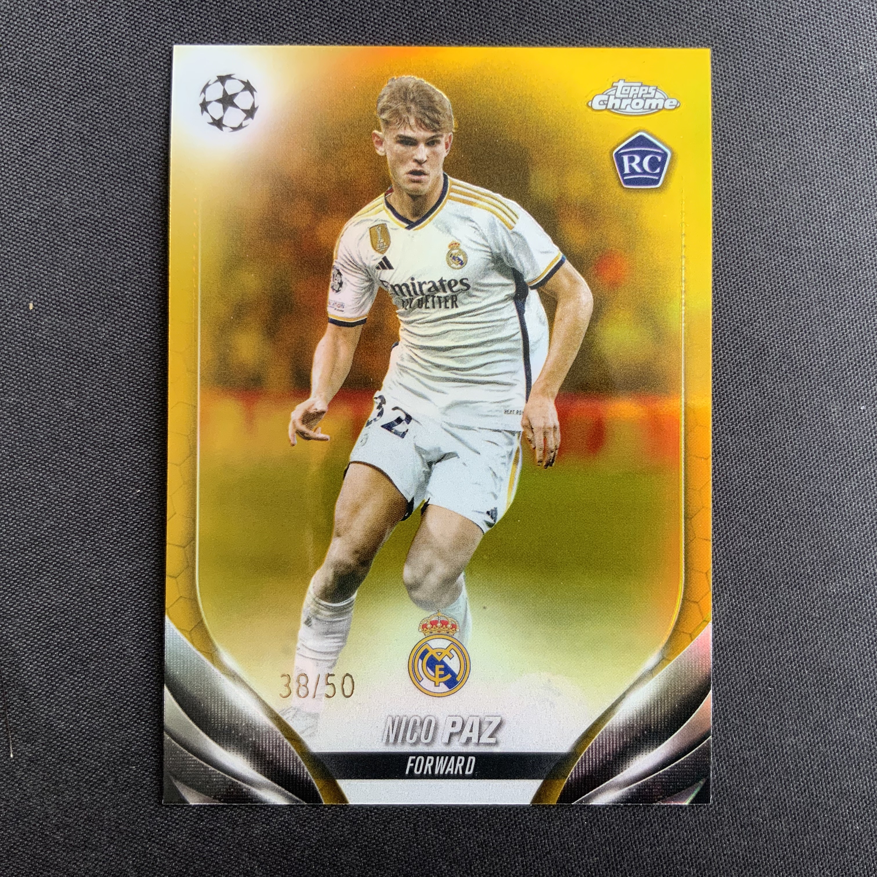 2023-24 Topps Chrome UEFA Nico Paz 尼科 帕斯 帕兹 38/50编 金折 正金 RC新秀 皇马 19岁 超级新秀 阿根廷 未来巨星 收藏 卡品如图 S149